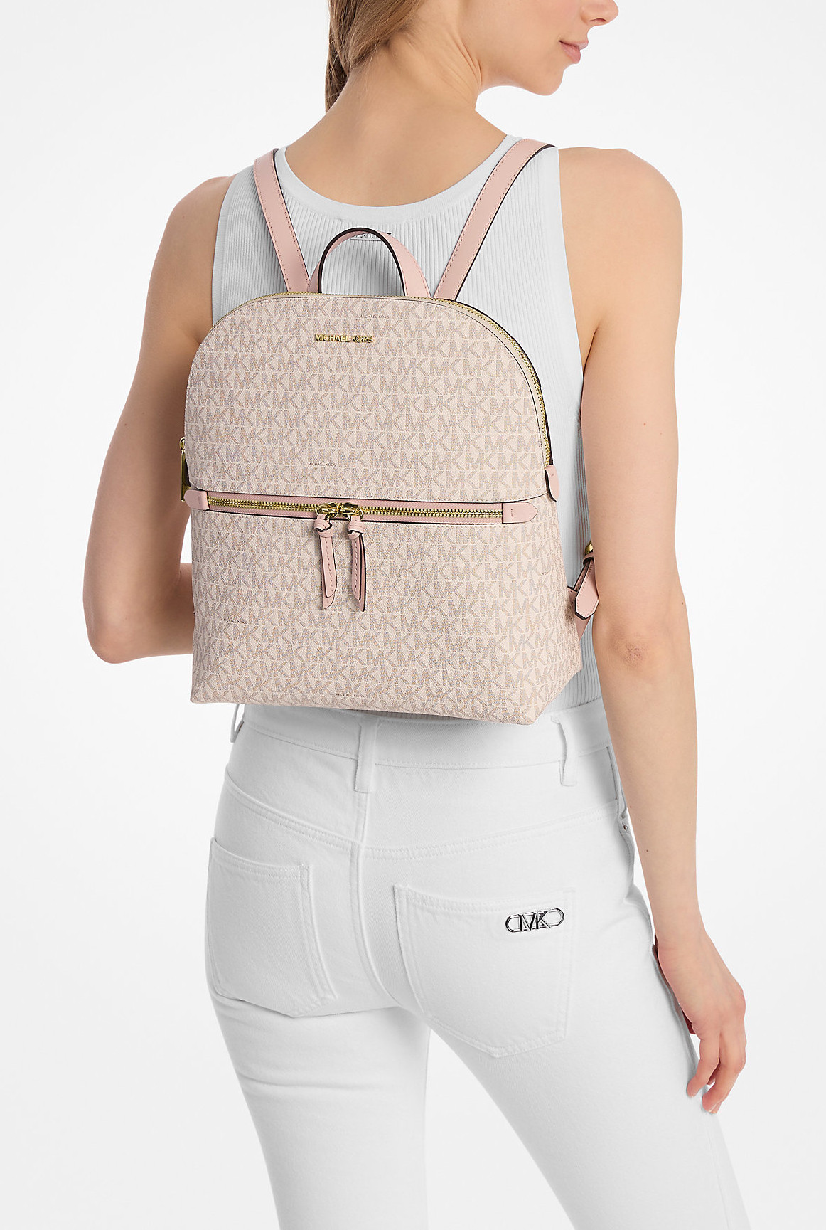 Michael Kors Batoh Dallas Medium Signature Logo Backpack Powder Blush Multi