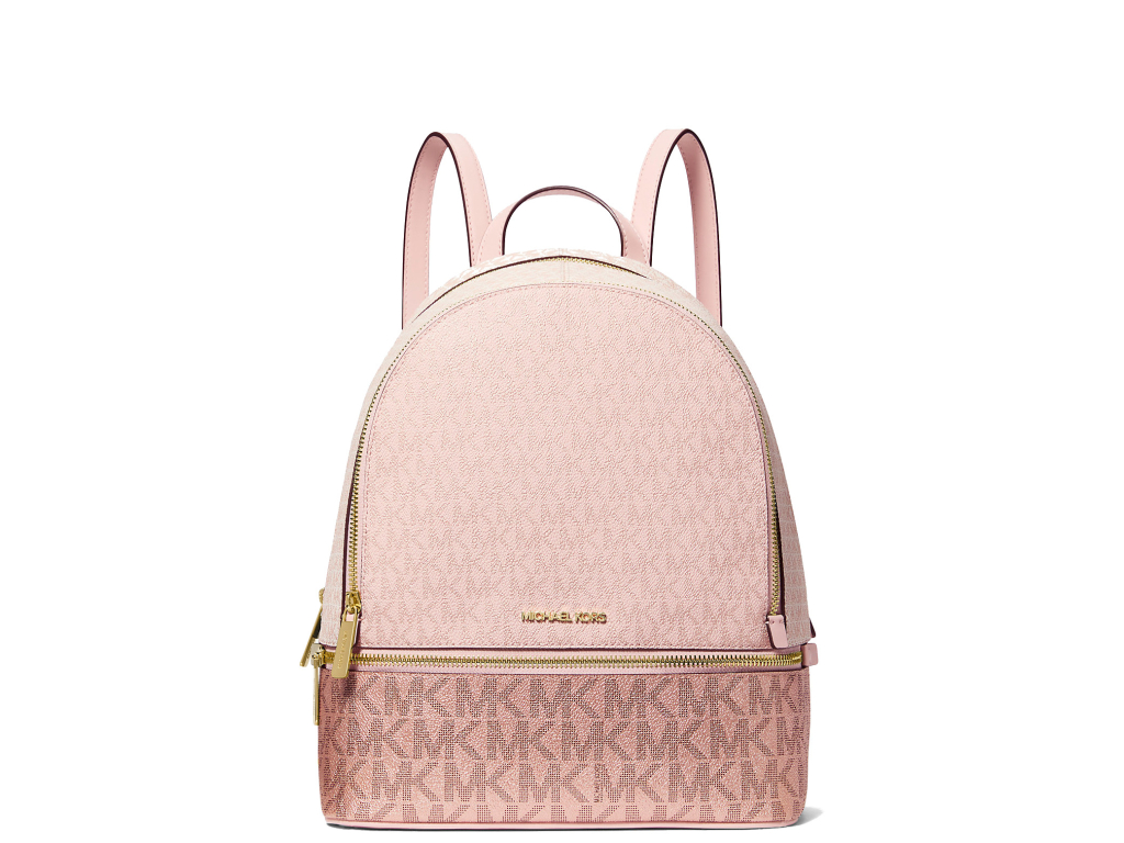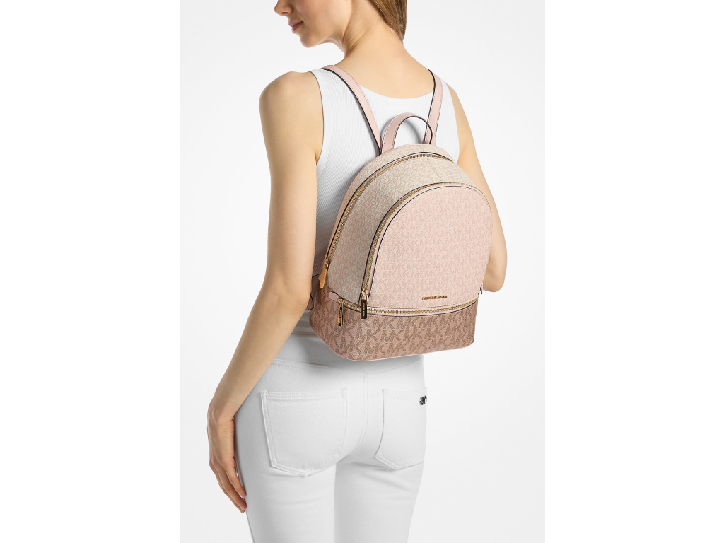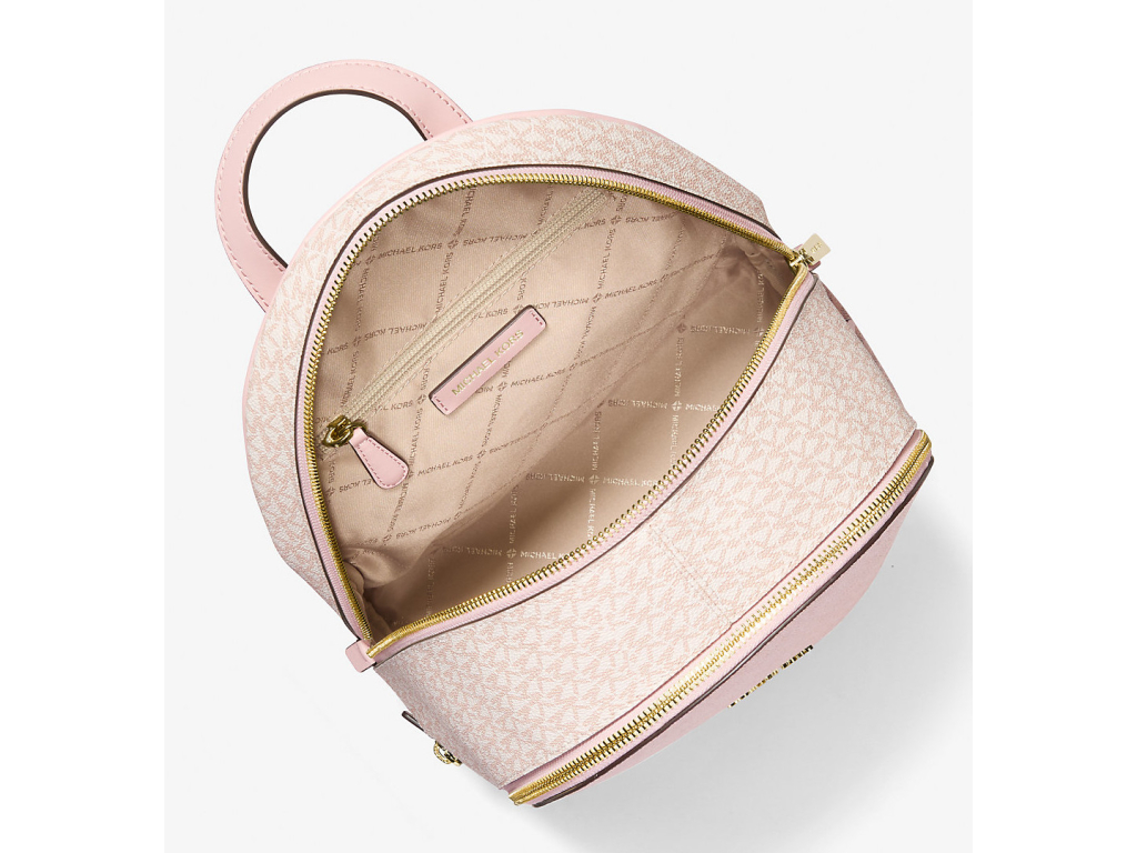 Michael Kors Batoh Rhea Medium Metallic Signature Logo Backpack Powder Blush