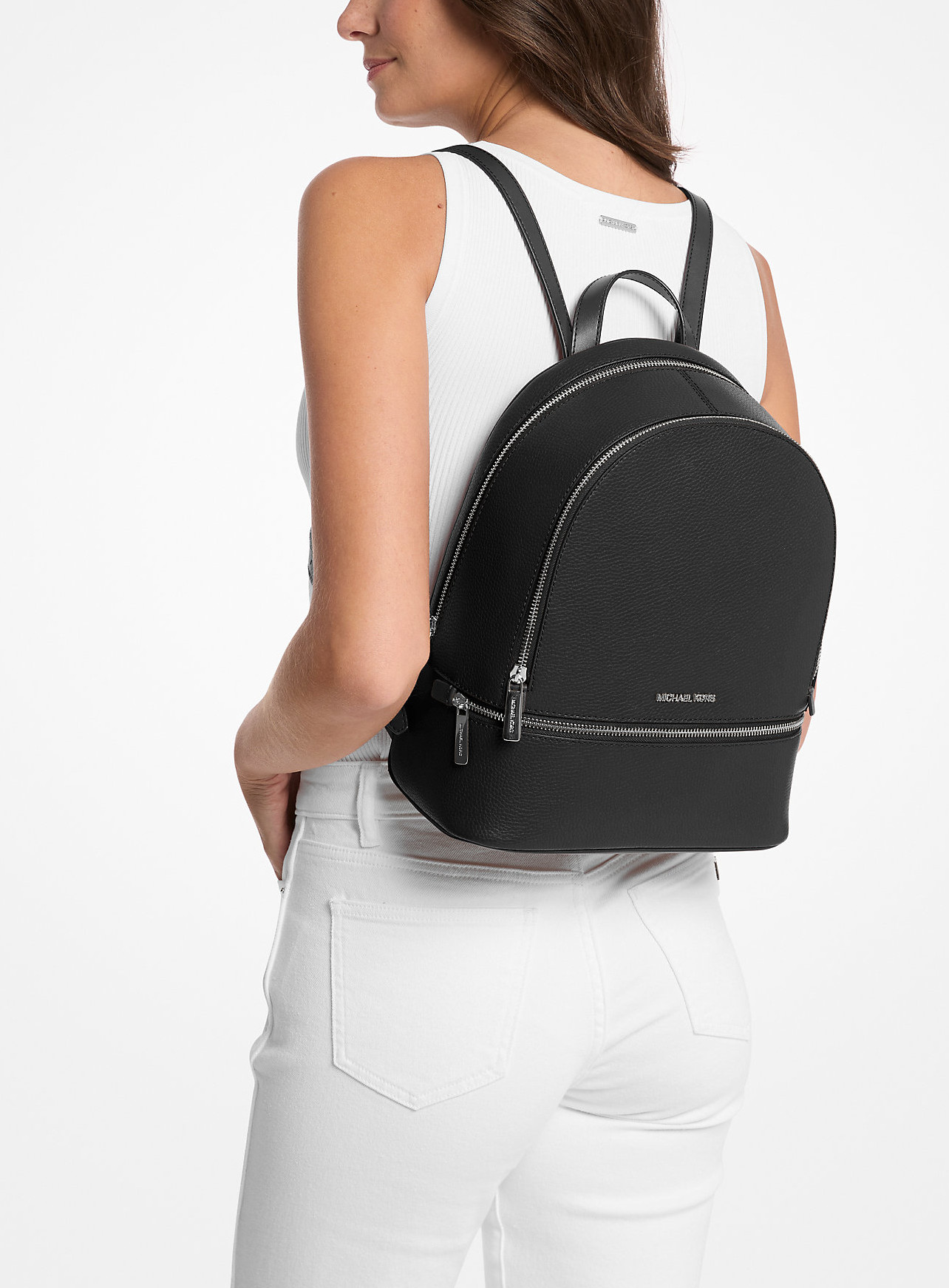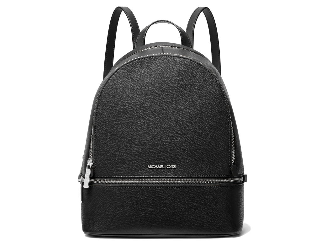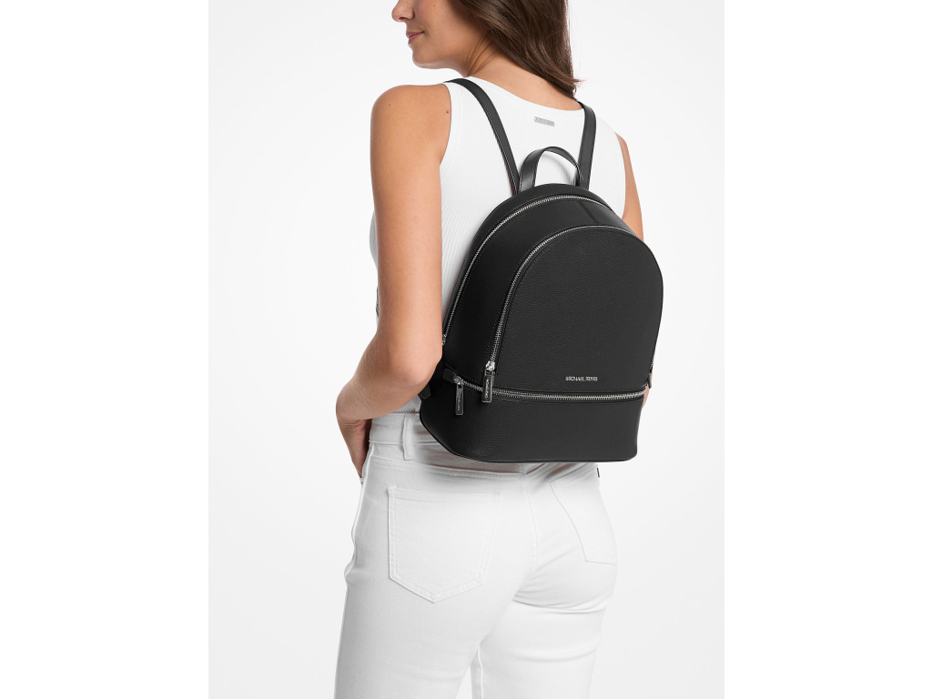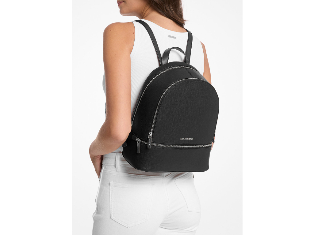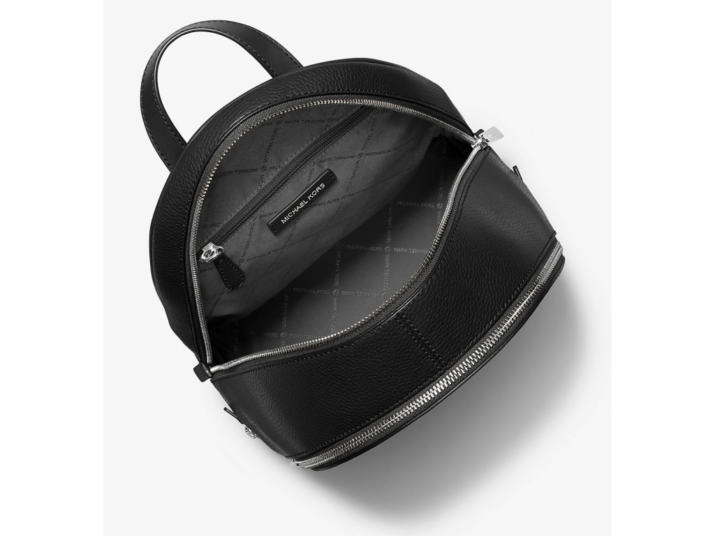 Michael Kors Batoh Rhea Medium Pebbled Leather Backpack Black Silver