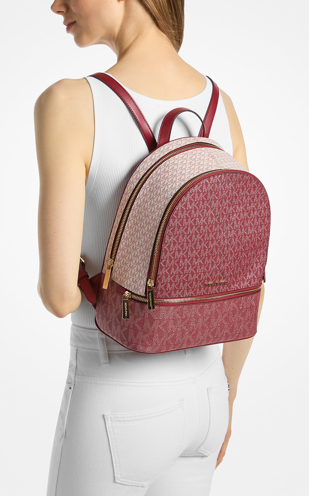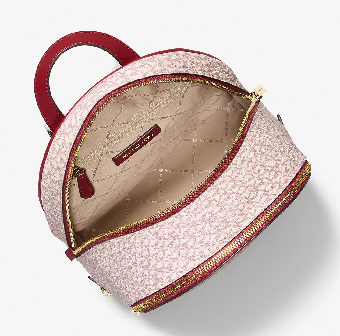 Michael Kors Batoh Rhea Medium Metallic Signature Logo Backpack Cherry