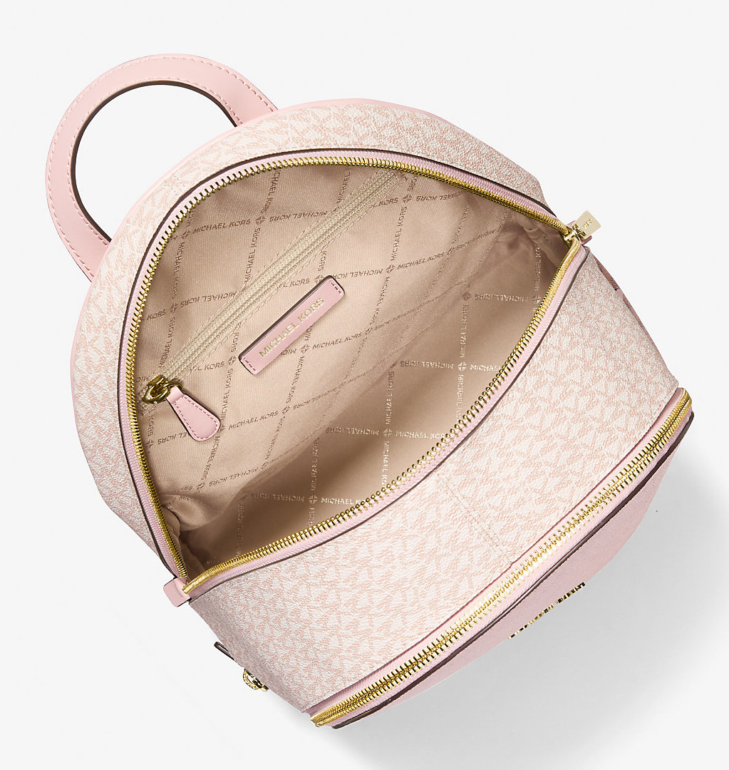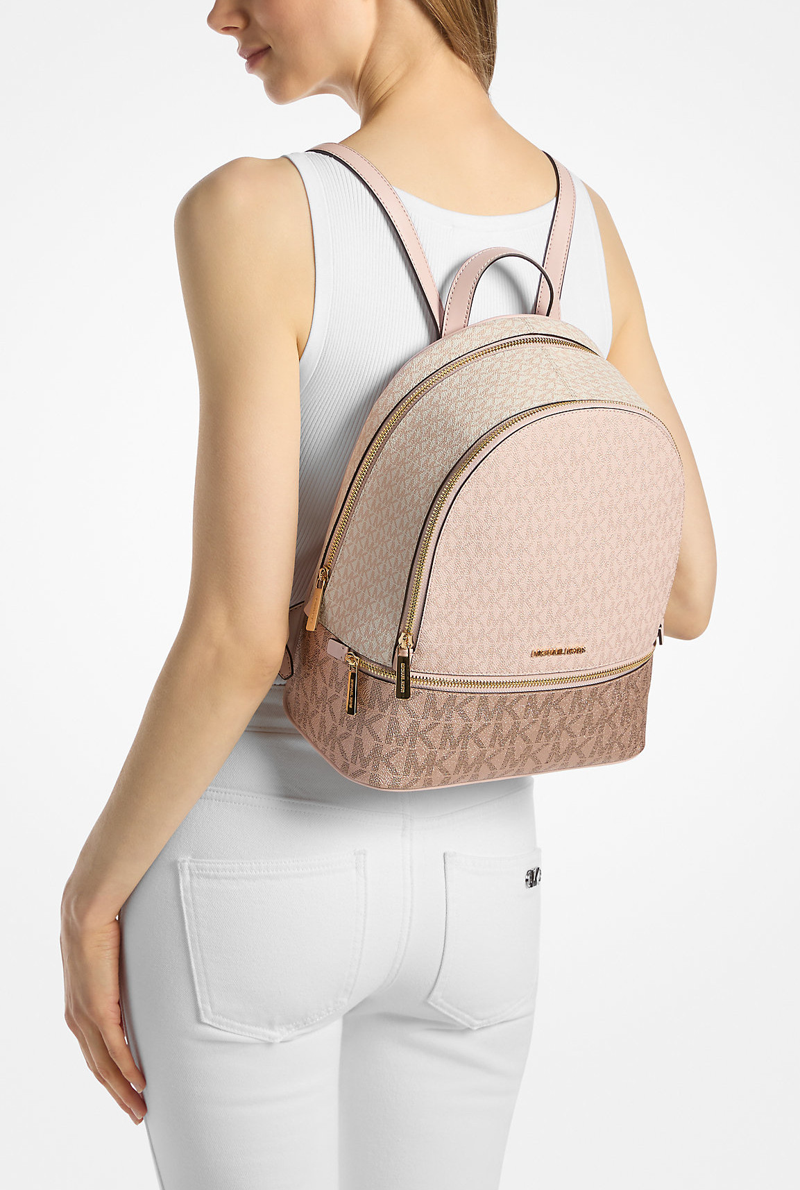 Michael Kors Batoh Rhea Medium Metallic Signature Logo Backpack Powder Blush
