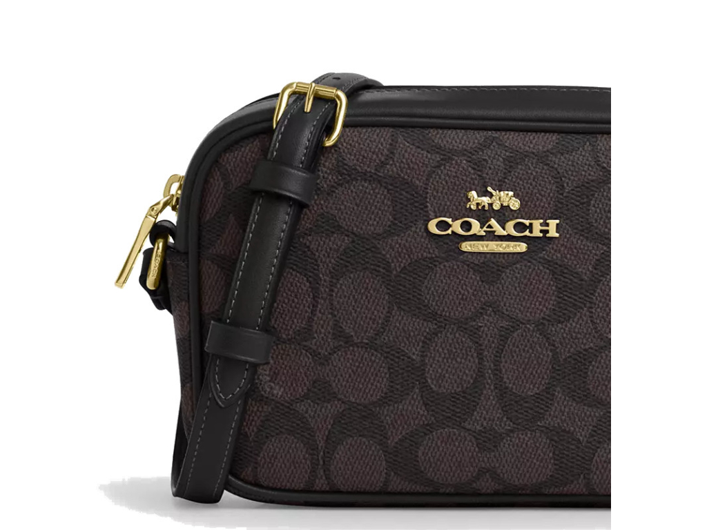COACH Kabelka Mini Jamie Camera Bag In Signature Canvas Gold Walnut Black