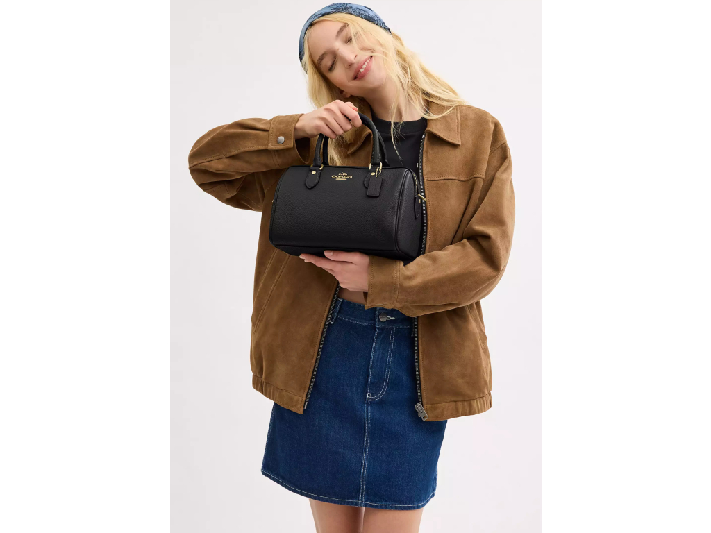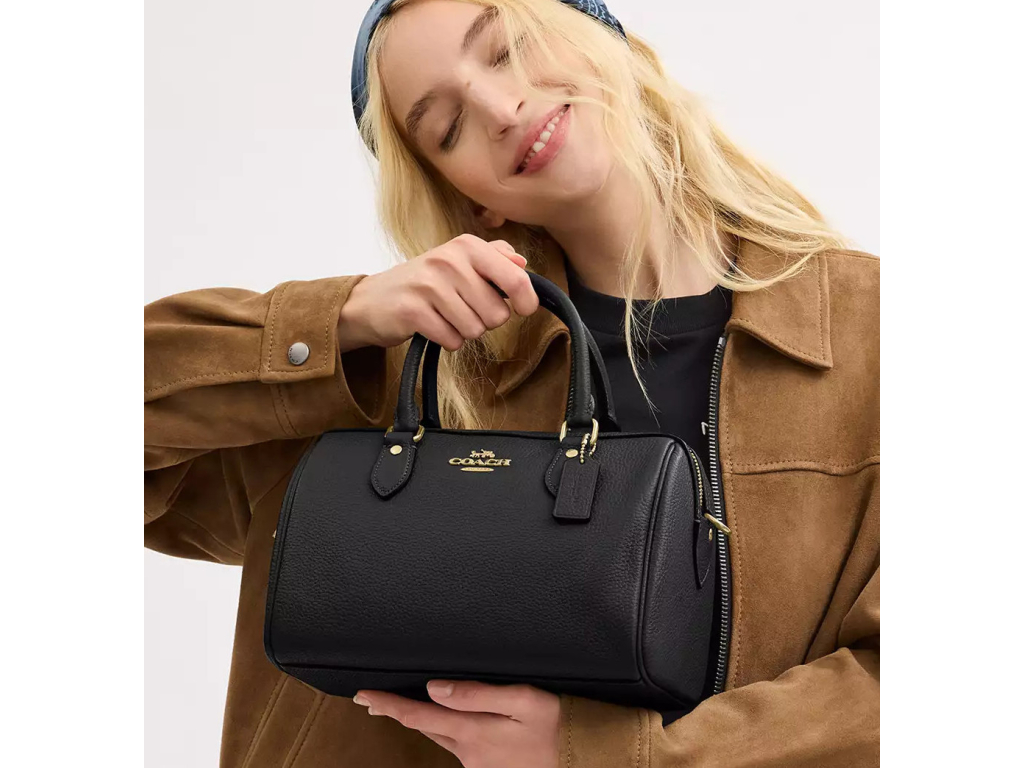 COACH Kabelka Rowan Satchel Bag Pebbled Leather Gold Black