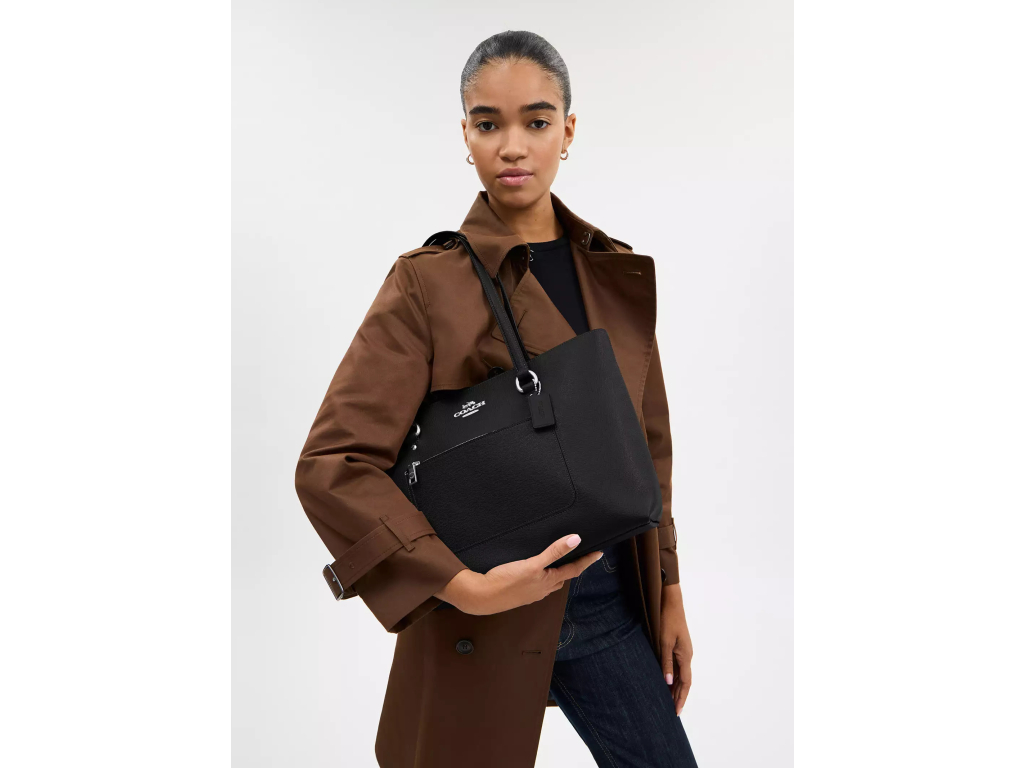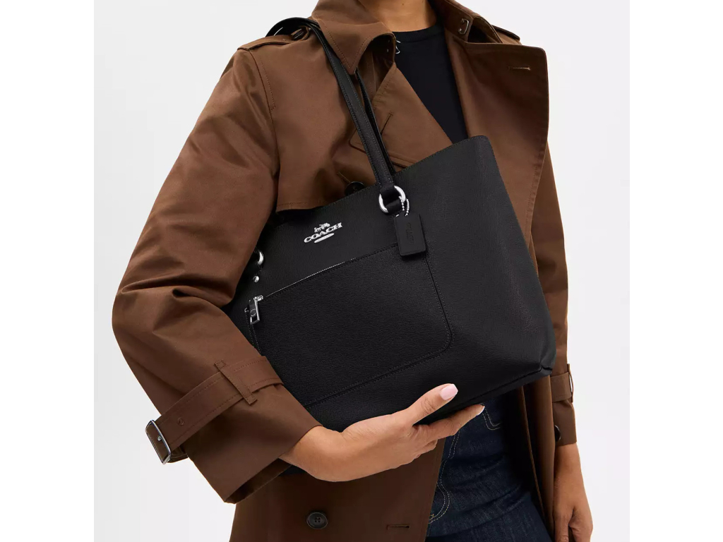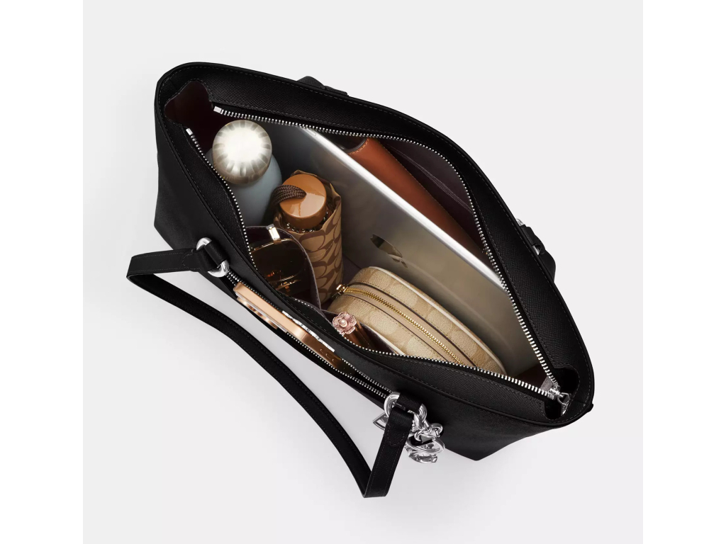 COACH Kabelka Station Tote Bag Crossgrain Leather Silver Black