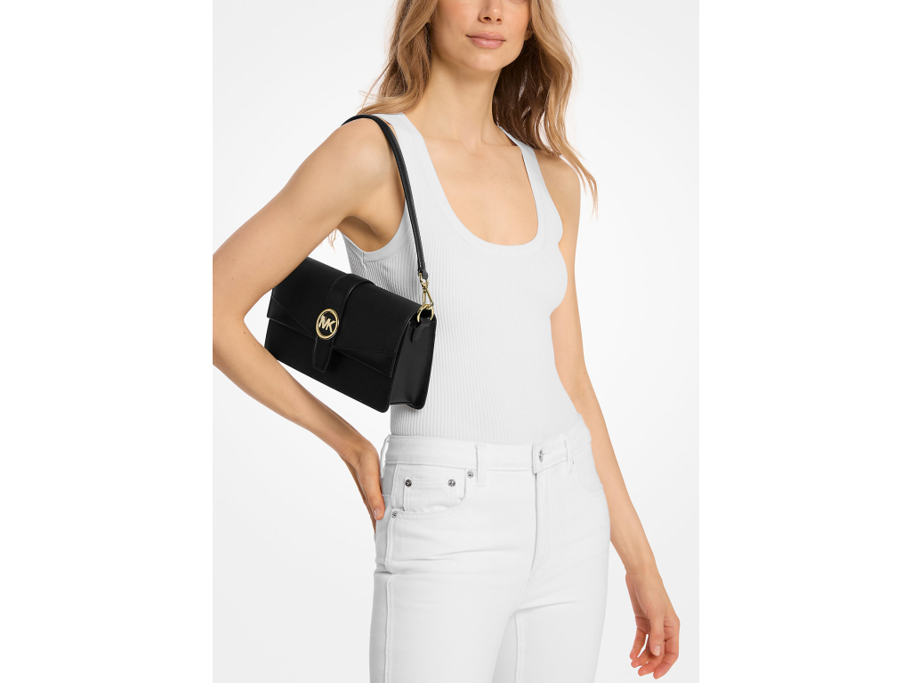 Michael Kors Greenwich Medium Saffiano Leather Shoulder Bag Black