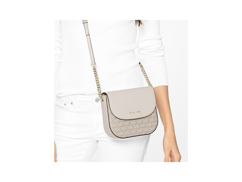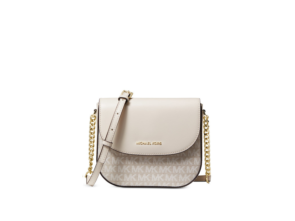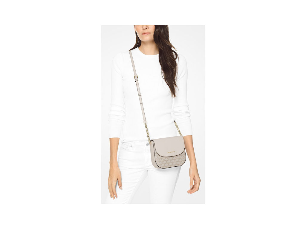 Michael Kors Jacquard Signature Dome Crossbody Natural Cream Gold