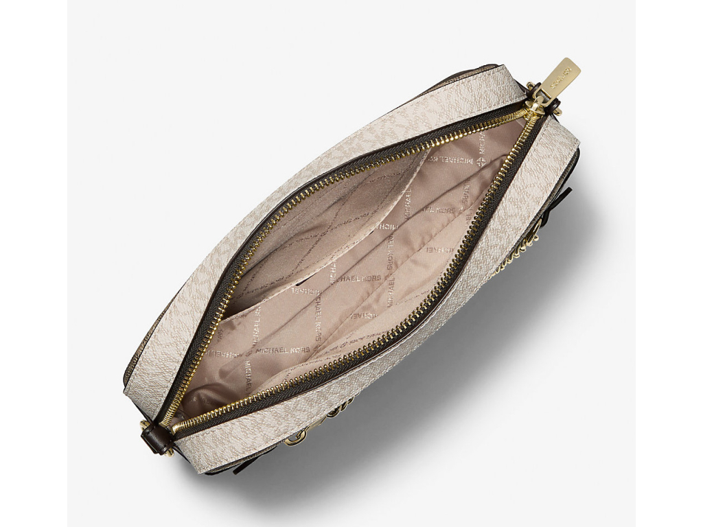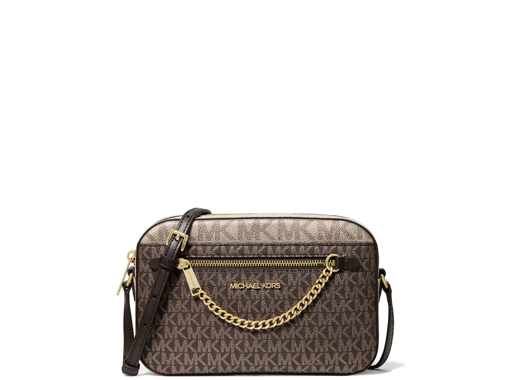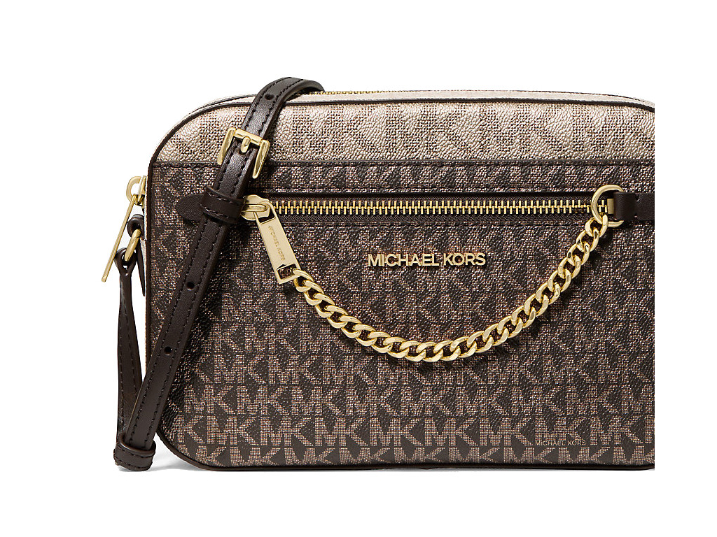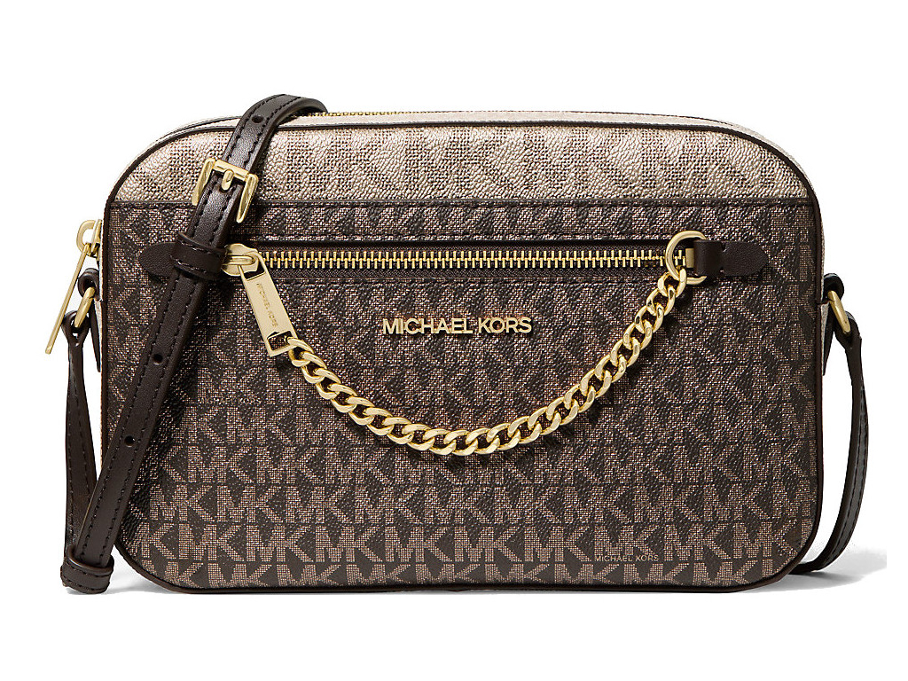 Michael Kors Jet Set Large Metallic Signature Logo Crossbody Bag Brown