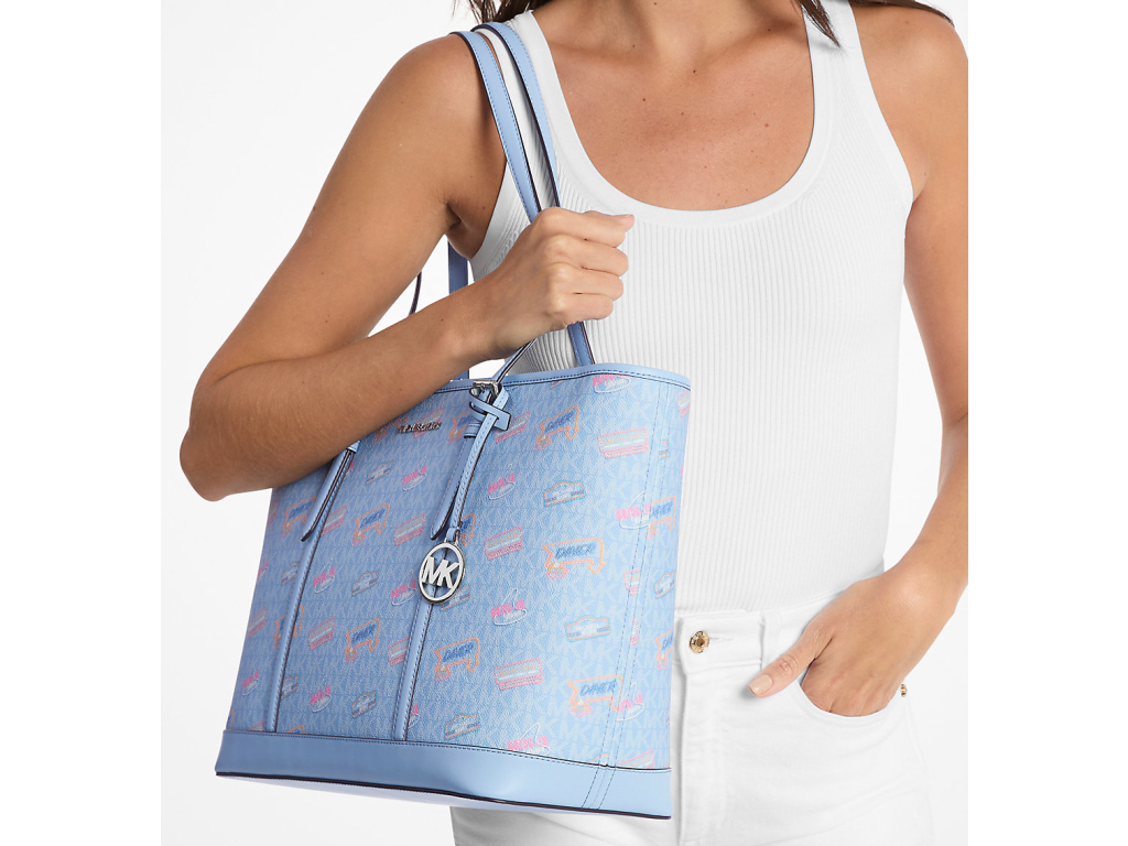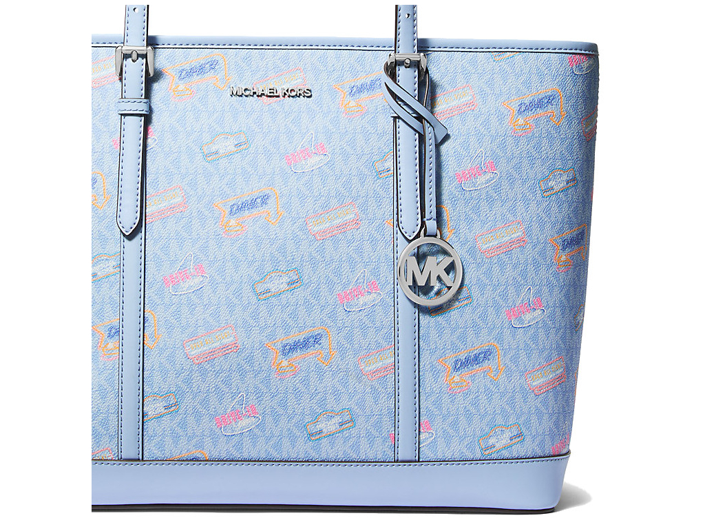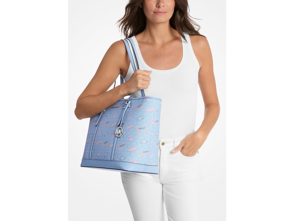 Michael Kors Jet Set Large Printed Signature Logo Tote Bag Light Sky