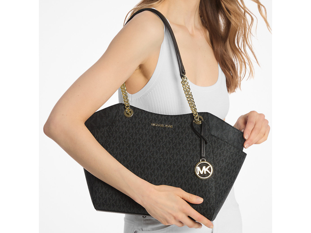 Michael Kors Jet Set Large Signature Logo Shoulder Bag Black