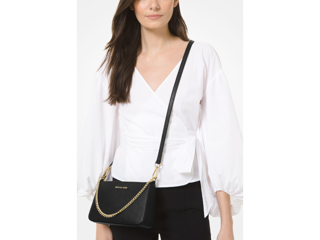 Michael Kors Jet Set Medium Saffiano Leather Crossbody Bag Black