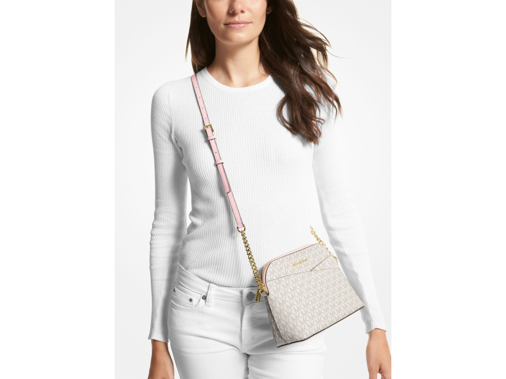 Michael Kors Jet Set Travel Medium Logo Dome Crossbody Bag Powder Blush Multi