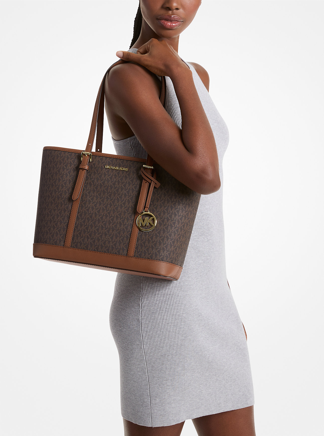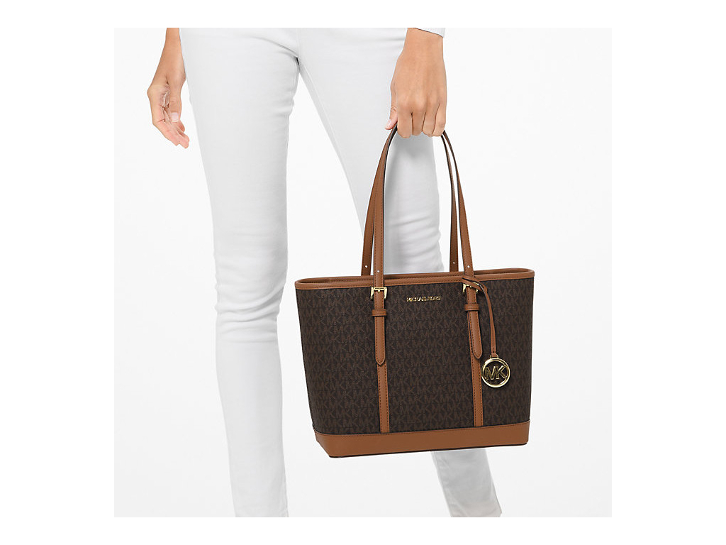 Michael Kors Jet Set Travel Small Logo Top-Zip Tote Bag Brown