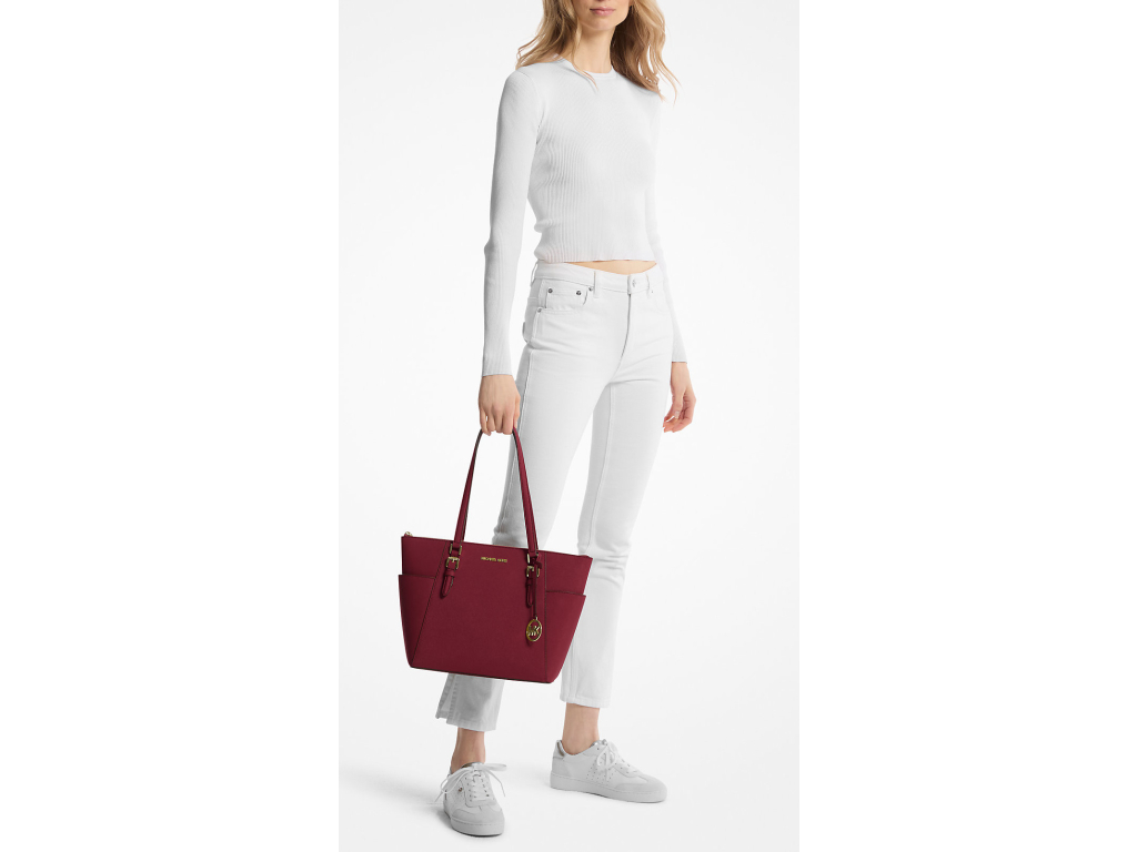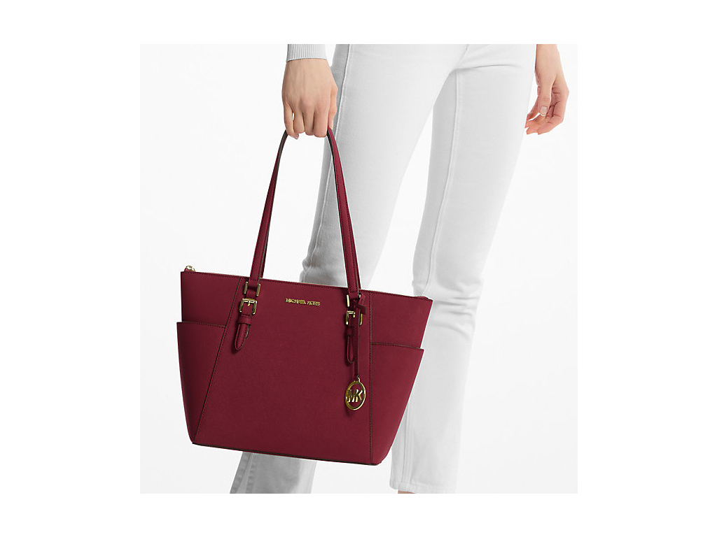 Michael Kors Kabelka Charlotte Large Saffiano Leather Top-Zip Tote Bag Cherry