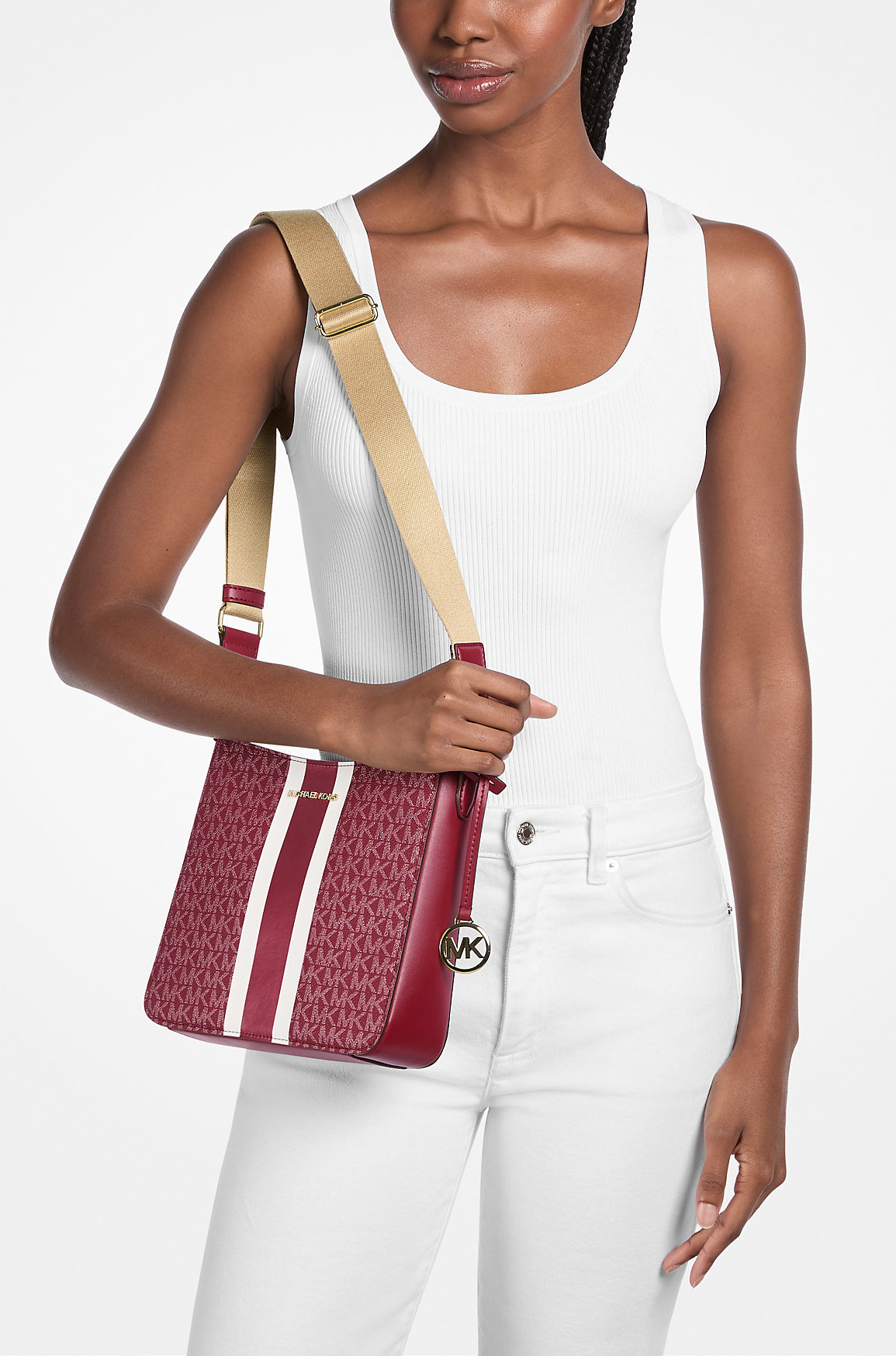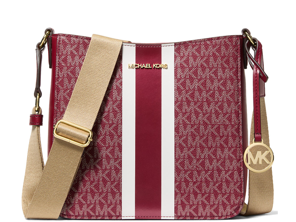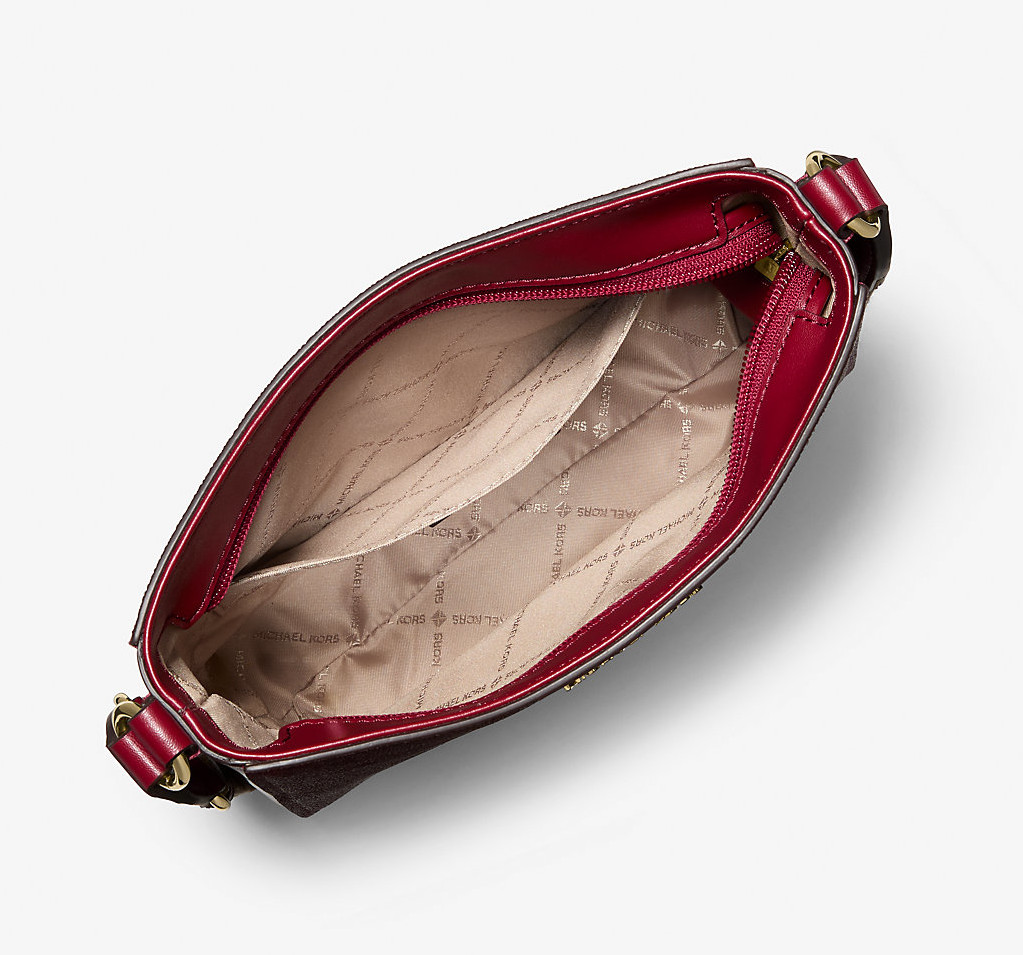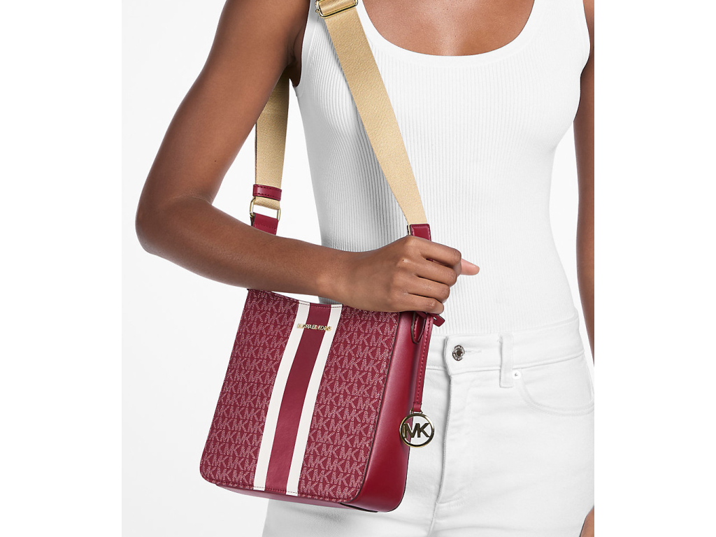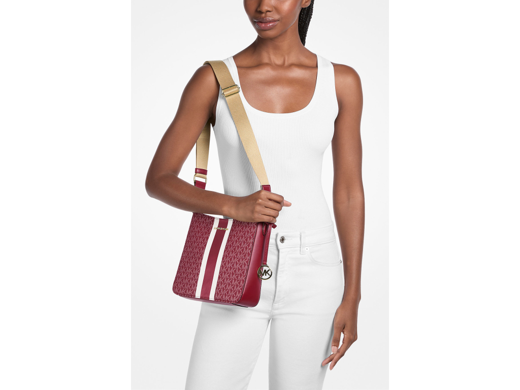 Michael Kors Kabelka Jet Set Small Signature Logo Stripe Crossbody Bag Cherry
