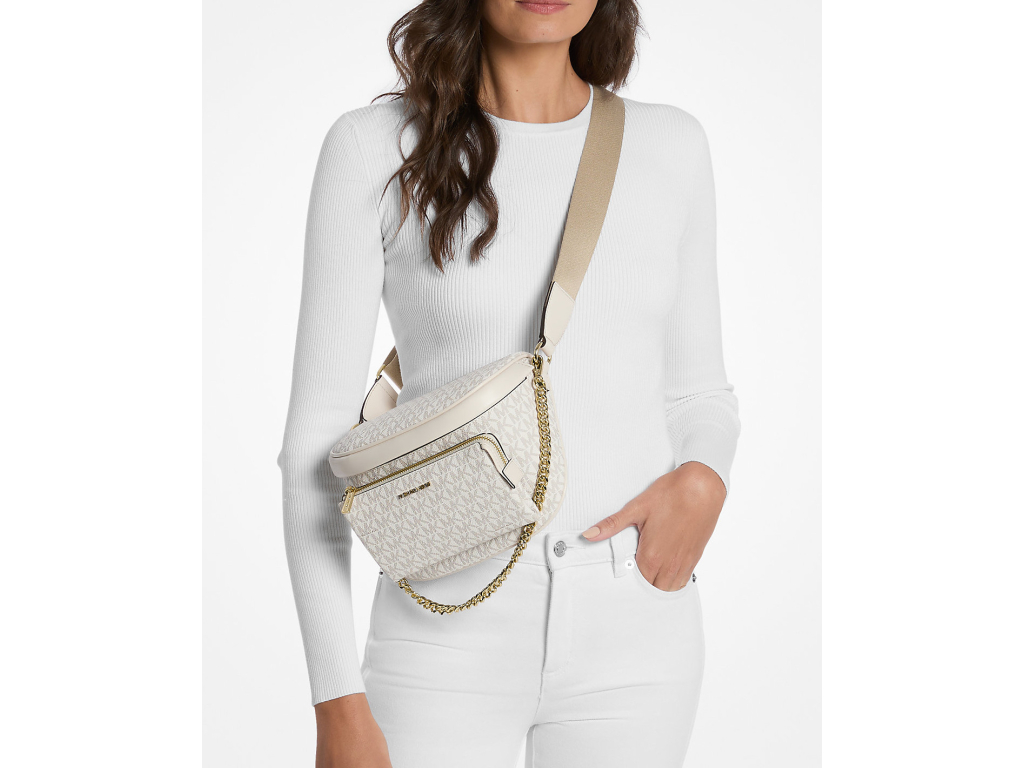 Michael Kors Kabelka Slater Medium Signature Logo Sling Pack Light Cream Multi