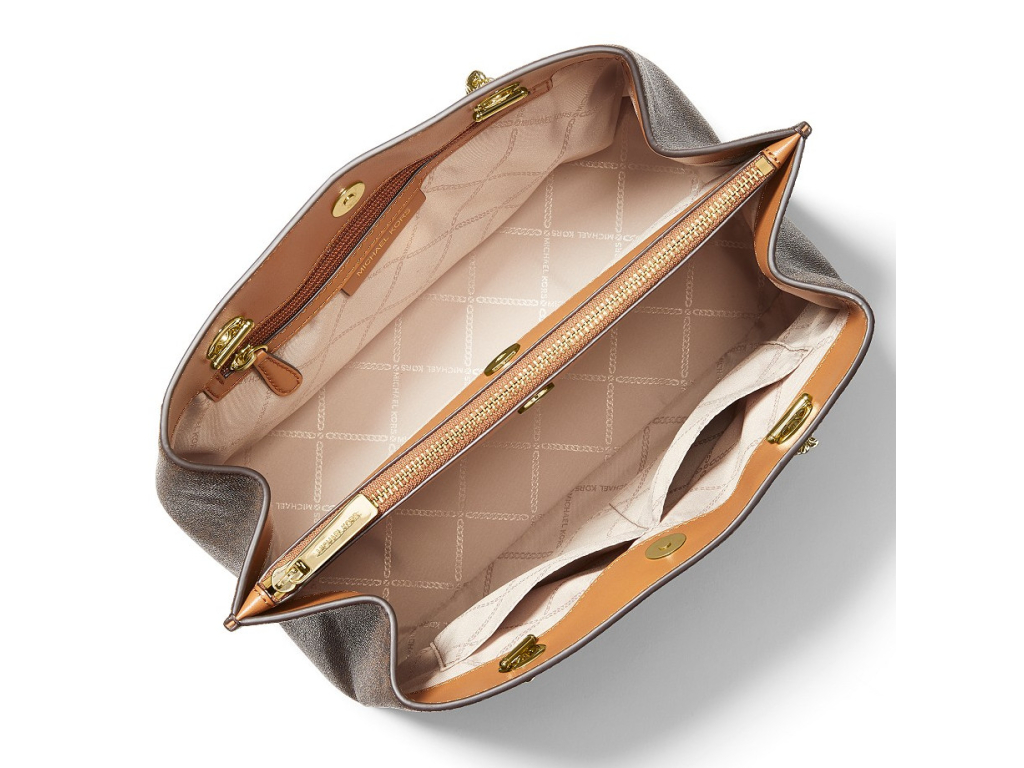 Michael Kors Kabelka Teagan Signature Long Drop Satchel Brown Acorn Gold