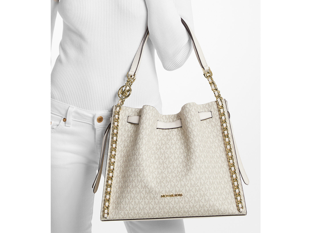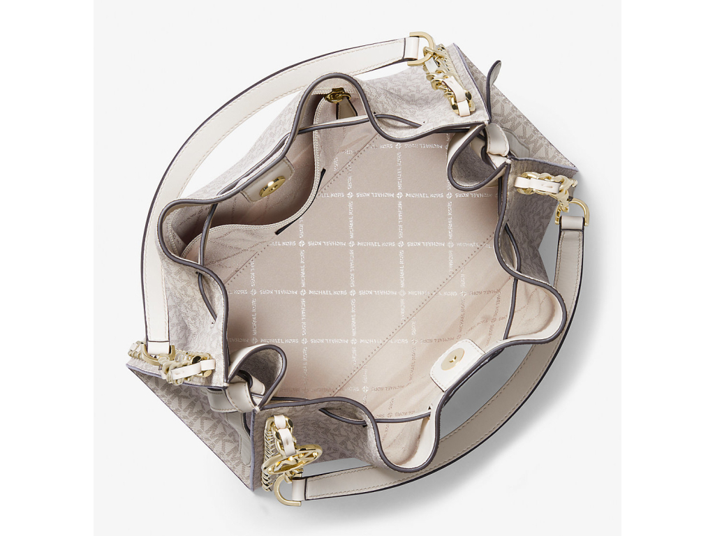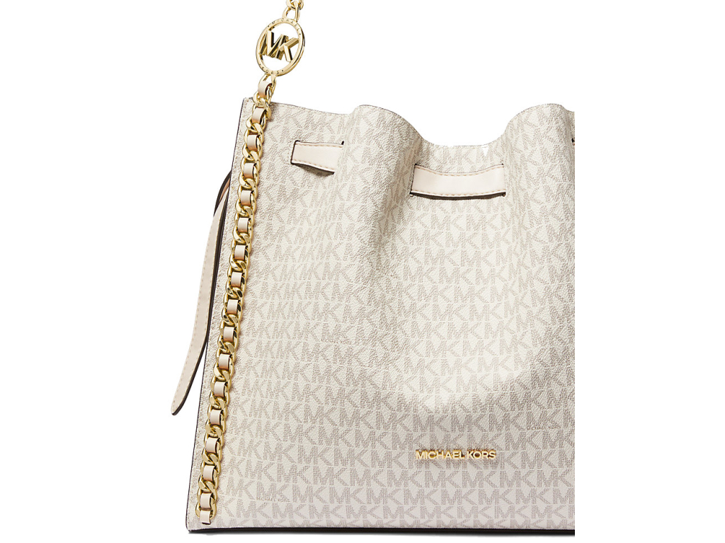 Michael Kors Mina Large Signature Logo Chain Shoulder Bag Light Cream Multi