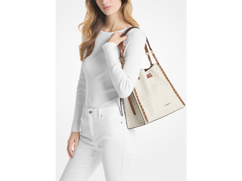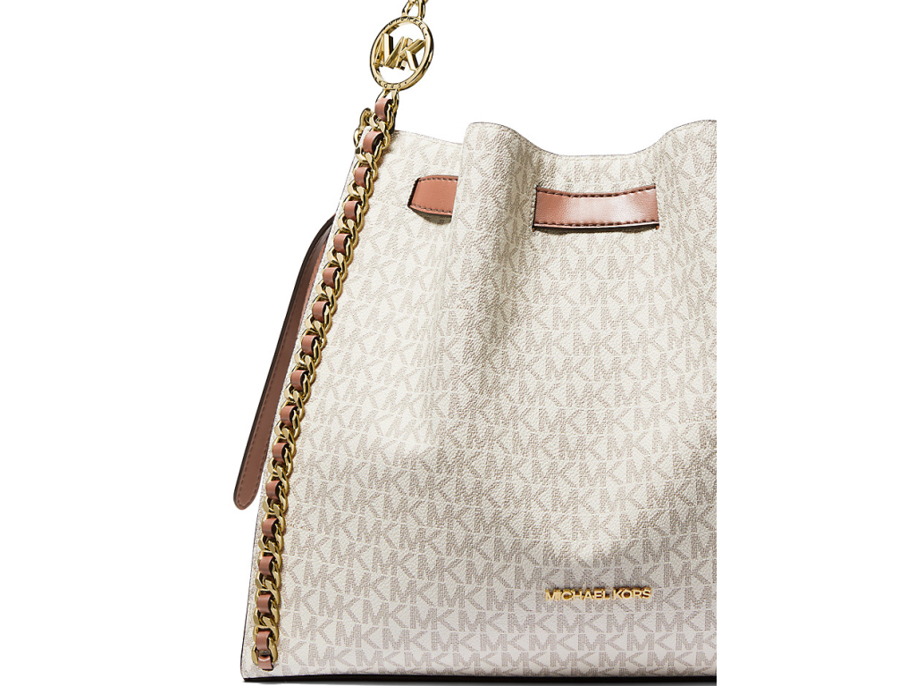 Michael Kors Mina Large Signature Logo Chain Shoulder Bag Vanilla