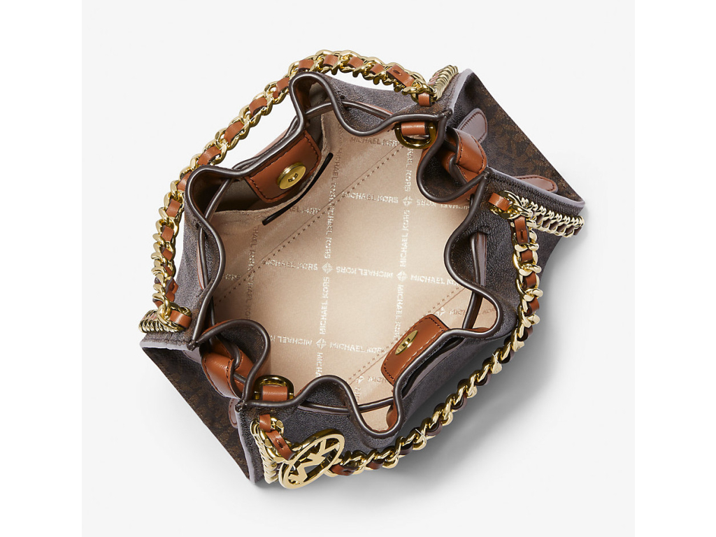 Michael Kors Mina Small Signature Logo Chain Crossbody Bag Brown