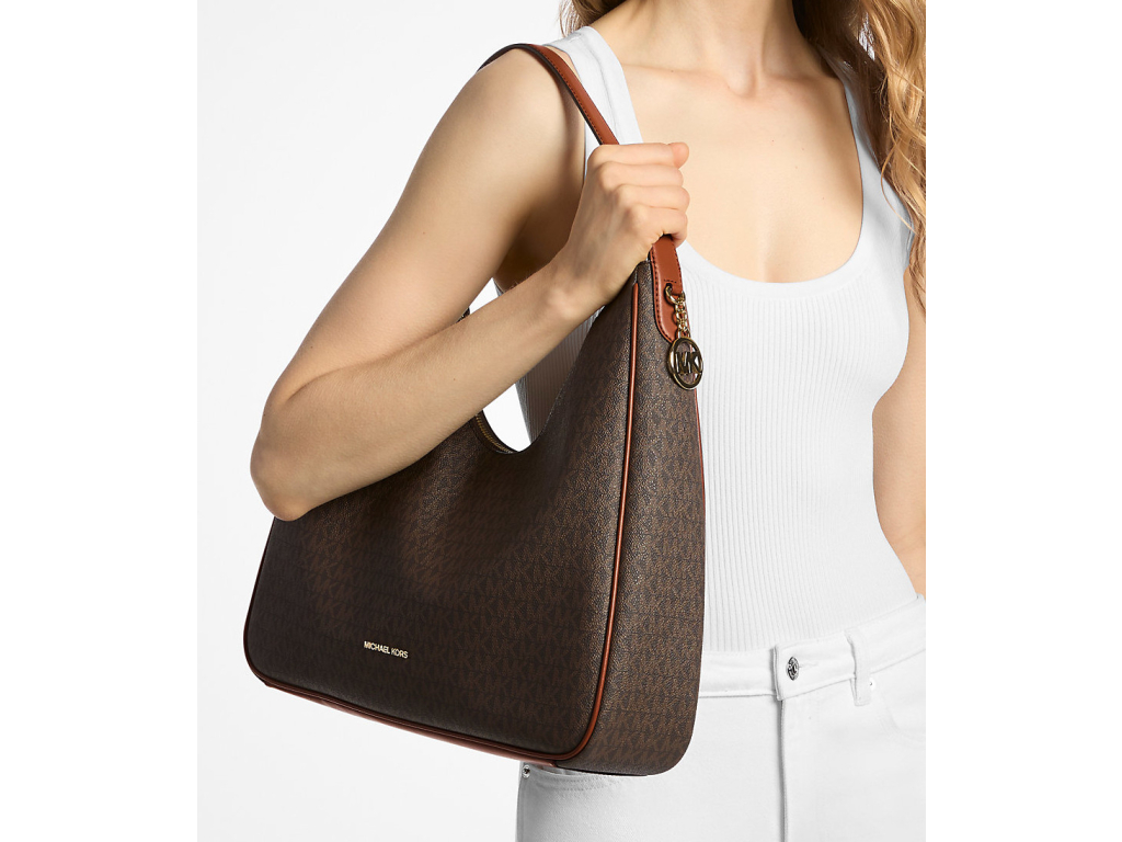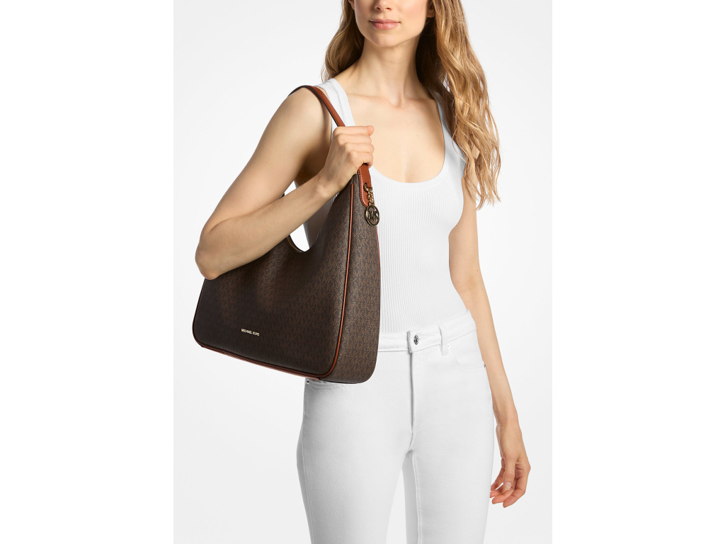 Michael Kors Nayla Medium Signature Logo Shoulder Bag Brown