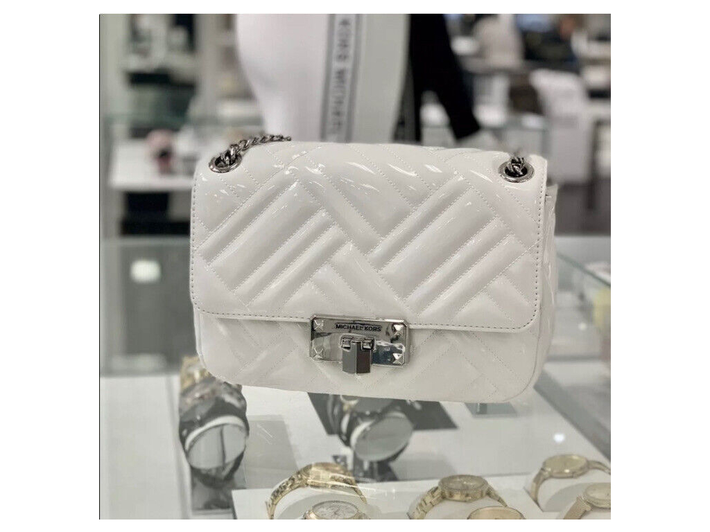 Michael Kors Peyton Medium Quilted Shoulder Bag Optic White