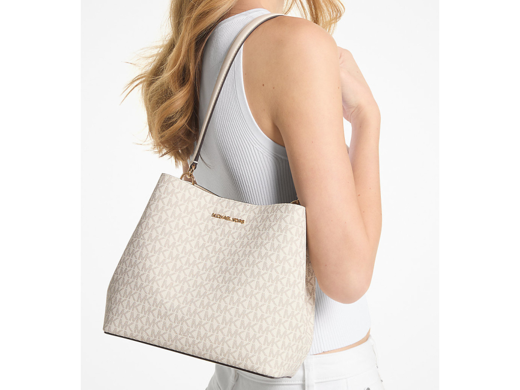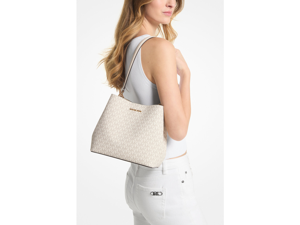 Michael Kors Pratt Medium Signature Logo Shoulder Light Cream Multi