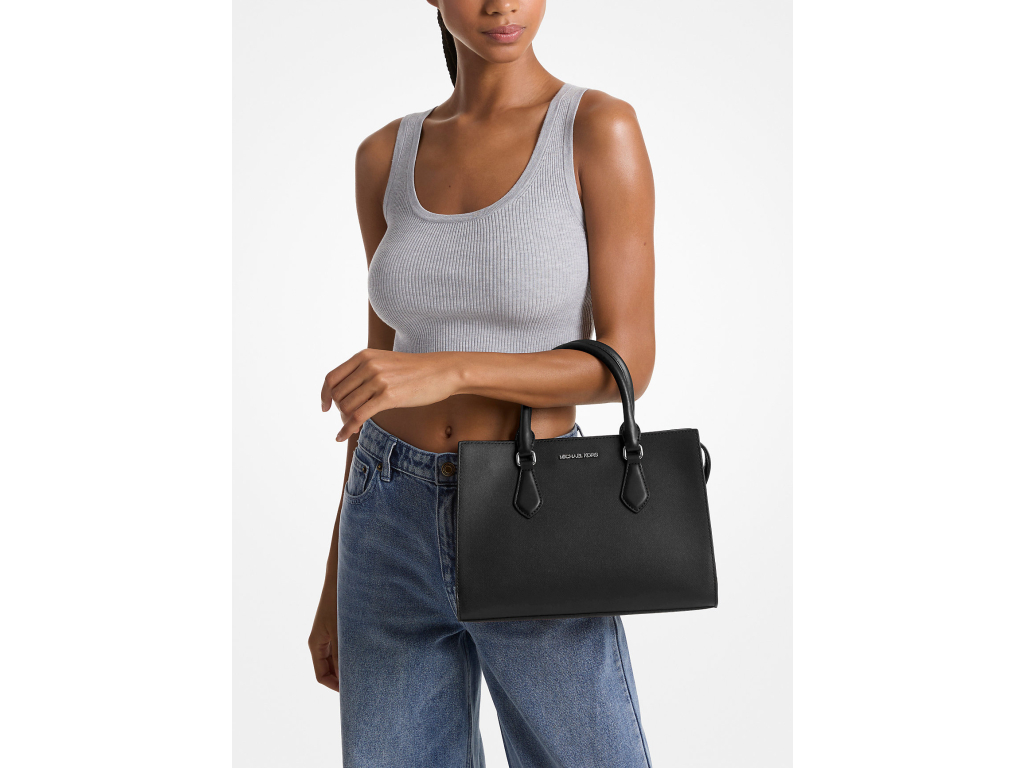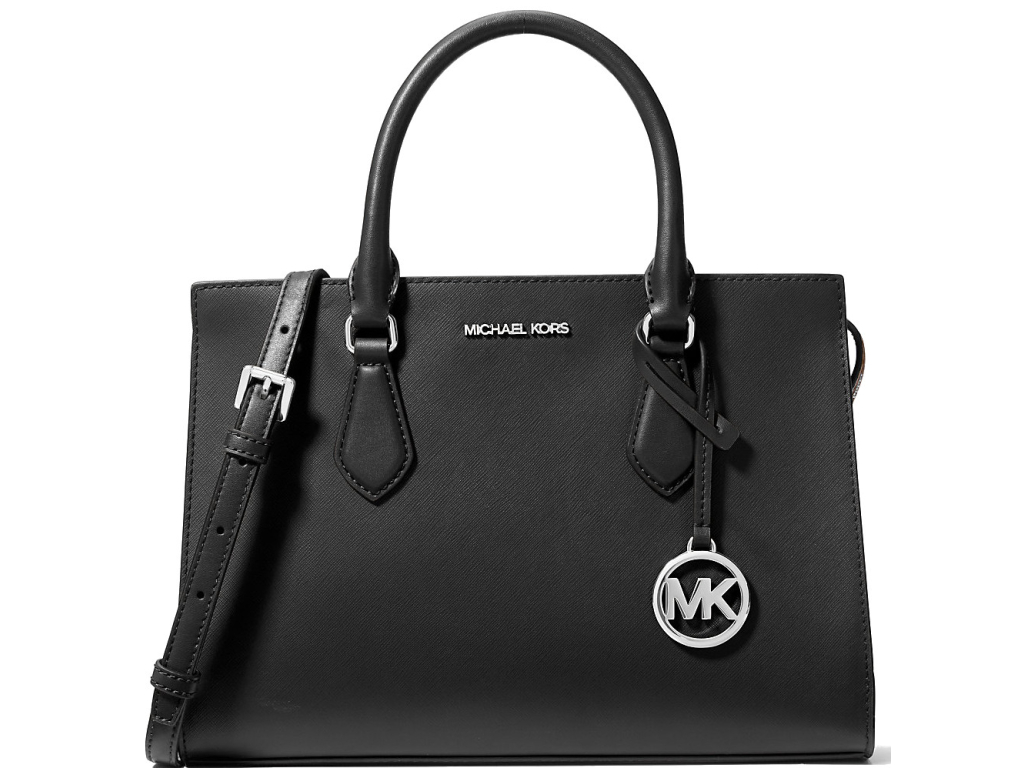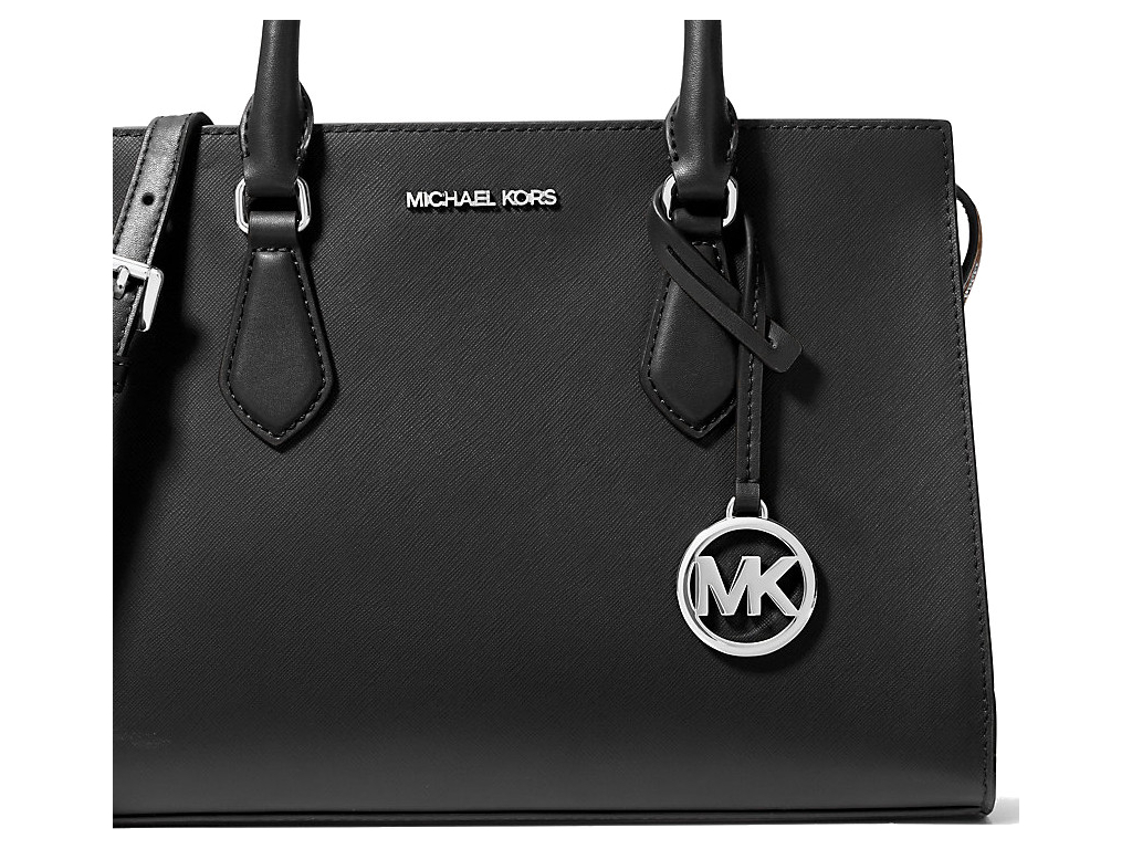 Michael Kors Sheila Medium Faux Saffiano Leather Satchel Black Silver