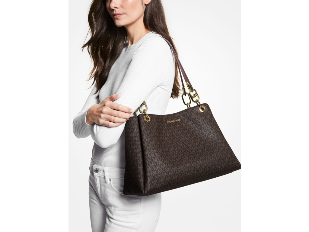 Michael Kors Trisha Large Logo Shoulder Bag Brown