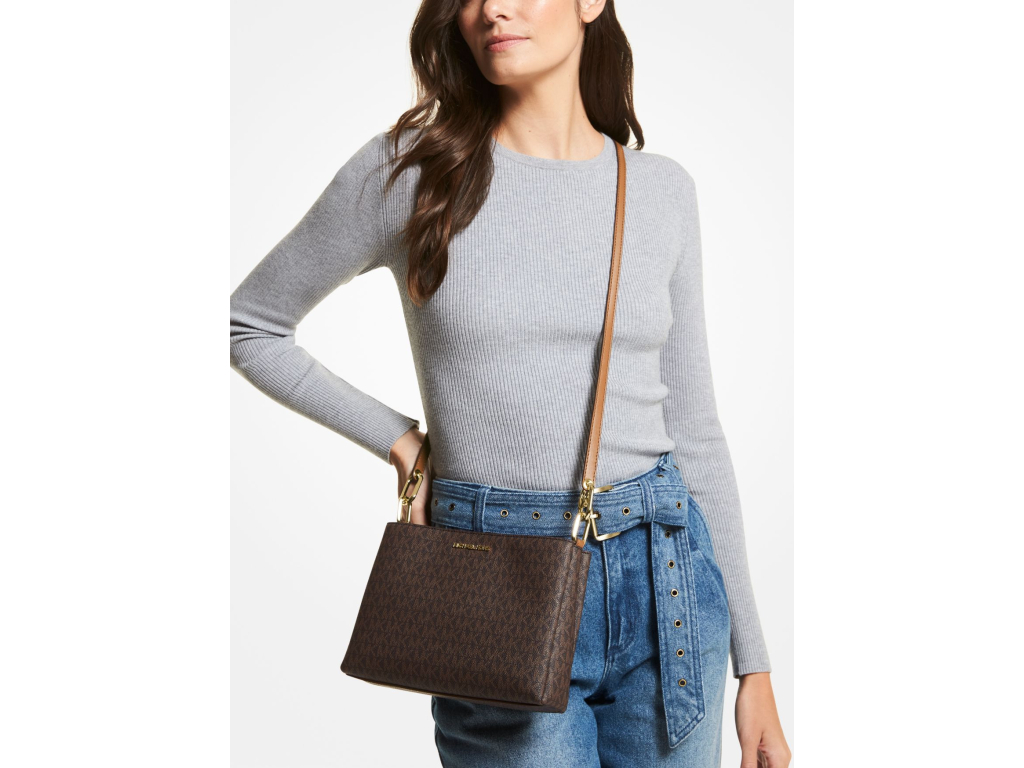 Michael Kors Trisha Medium Pebbled Leather Crossbody Bag Brown