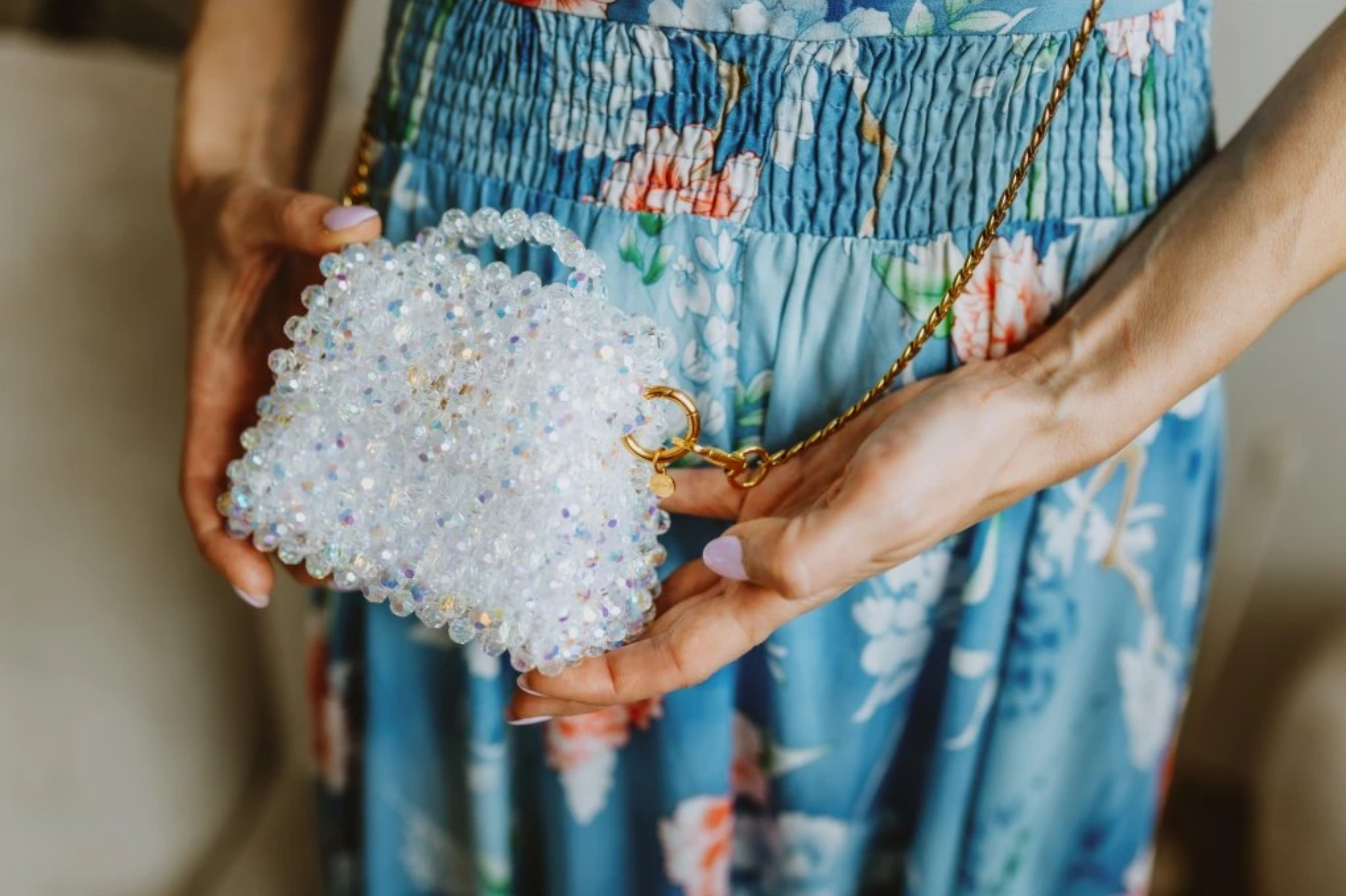 Ručně vyrobená kabelka z cca 900 broušených korálků Aurora (Crystal AB) podtrhne váš styl.