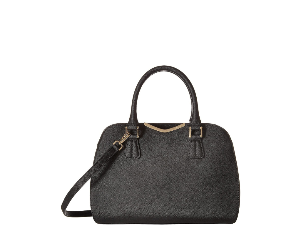 Calvin Klein On My Corner Saffiano Leather Satchel Black Gold