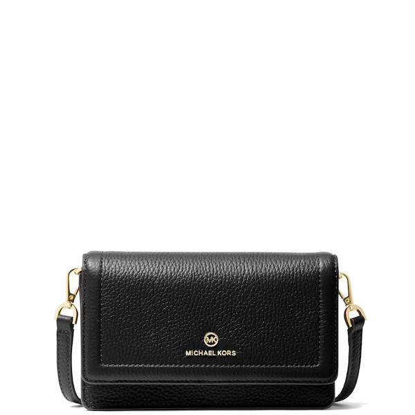 Michael Kors Jet Set Small Pebbled Leather Smartphone Convertible Crossbody Bag Black Gold