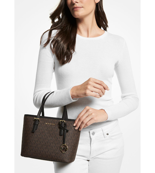 Michael Kors Jet Set Travel Extra-Small Logo Top-Zip Tote Bag Brown Black