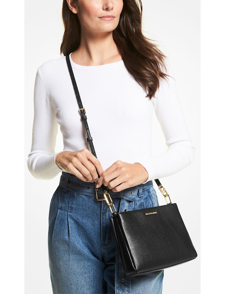 Michael Kors Trisha Medium Pebbled Leather Crossbody Bag Black