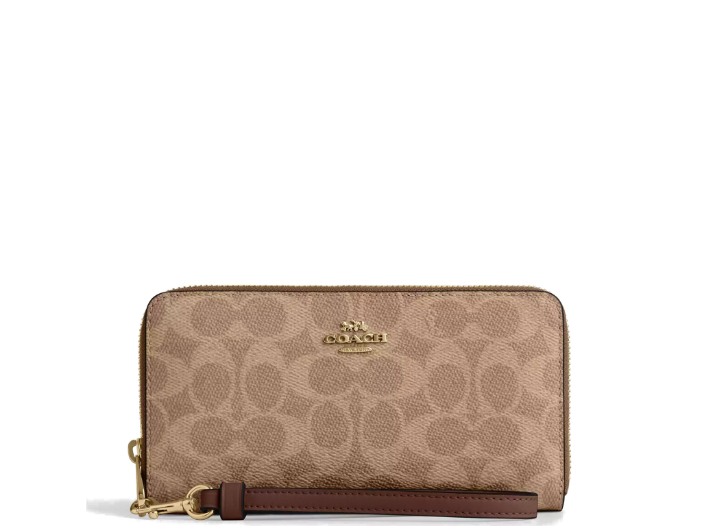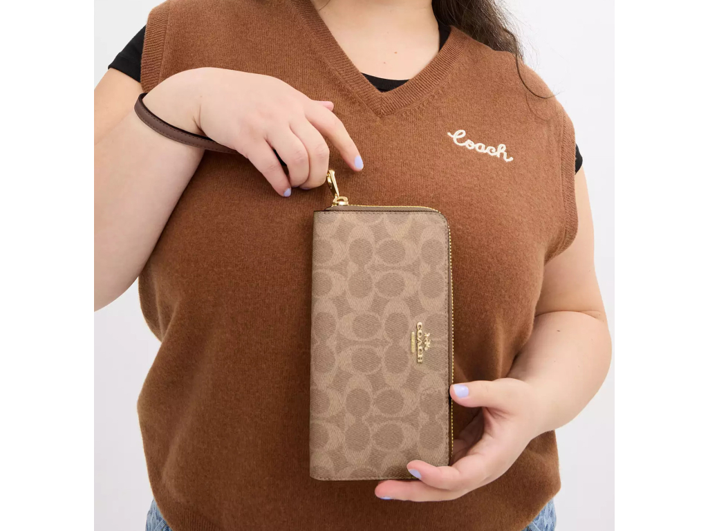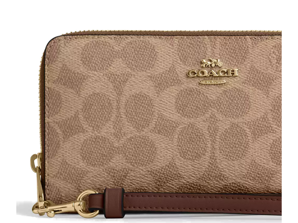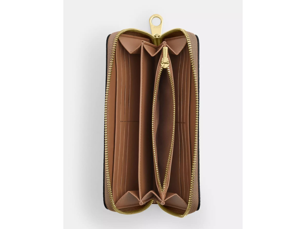 COACH Peněženka Long Zip Around Wallet In Signature Canvas Gold Tan Brown