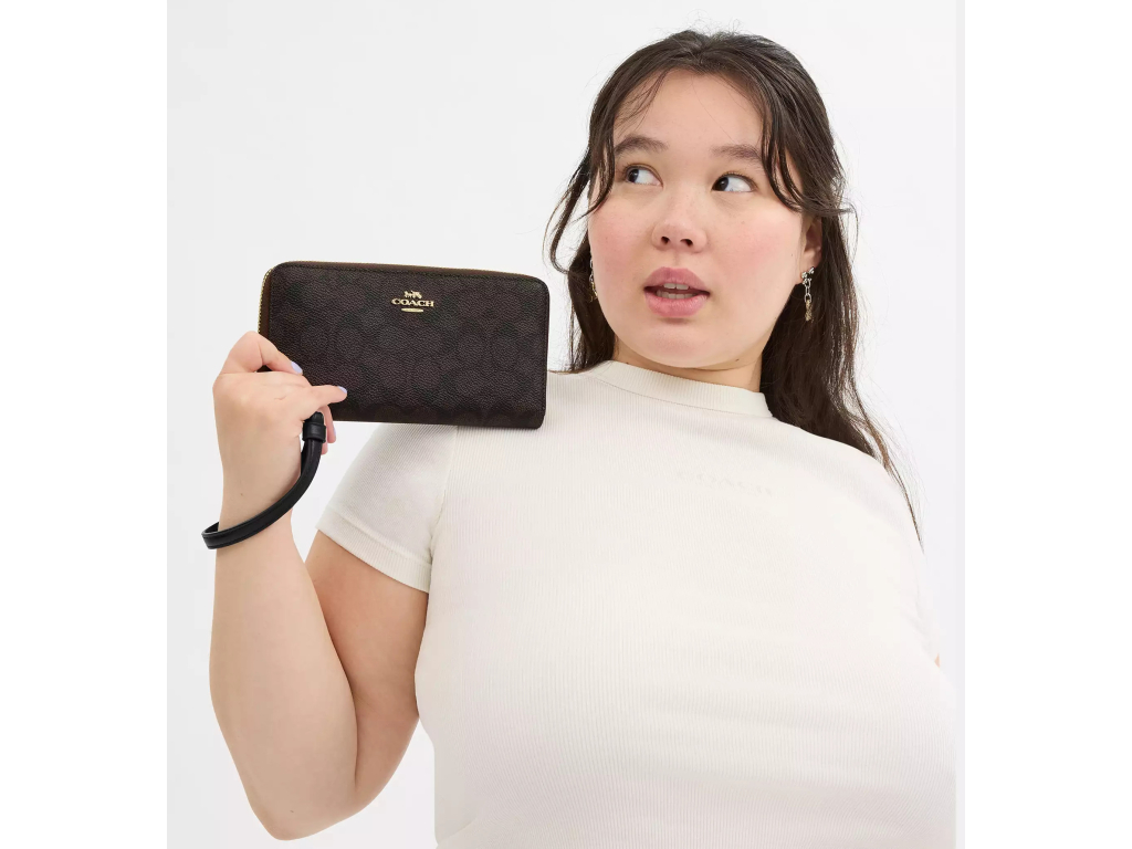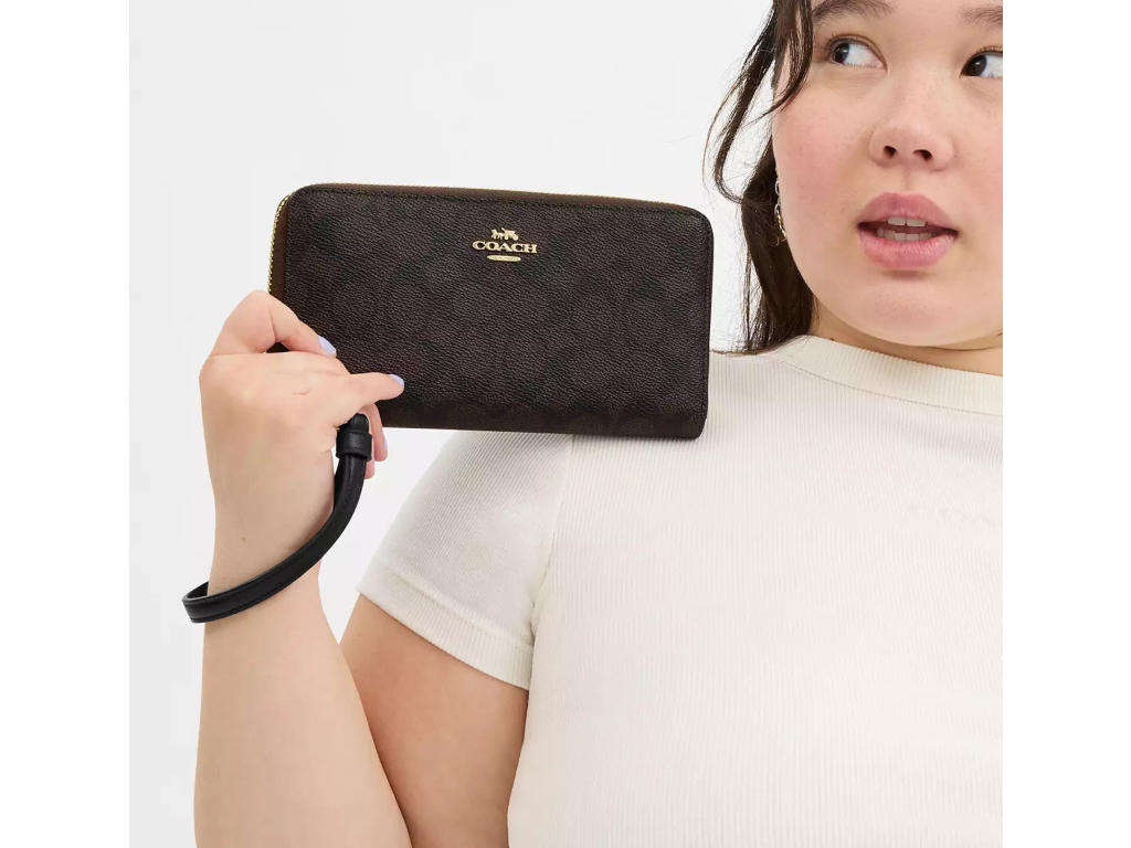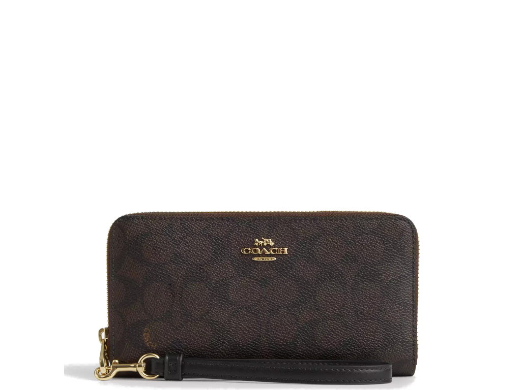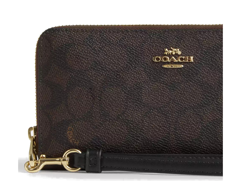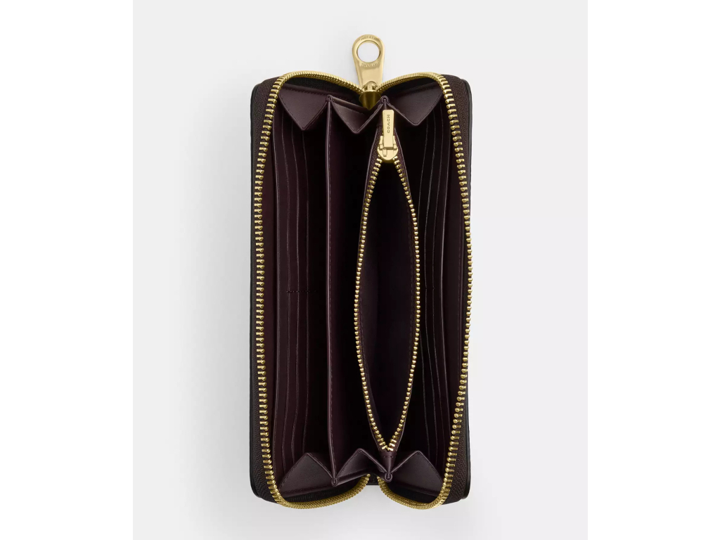 COACH Peněženka Long Zip Around Wallet In Signature Canvas Gold Wallnut Black