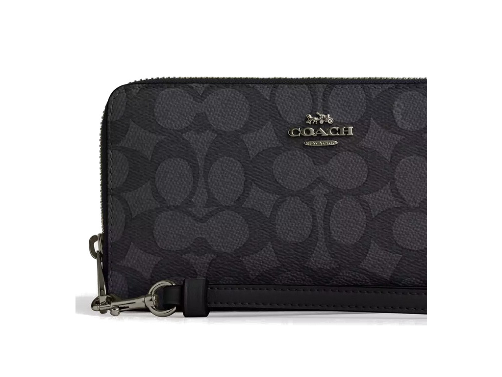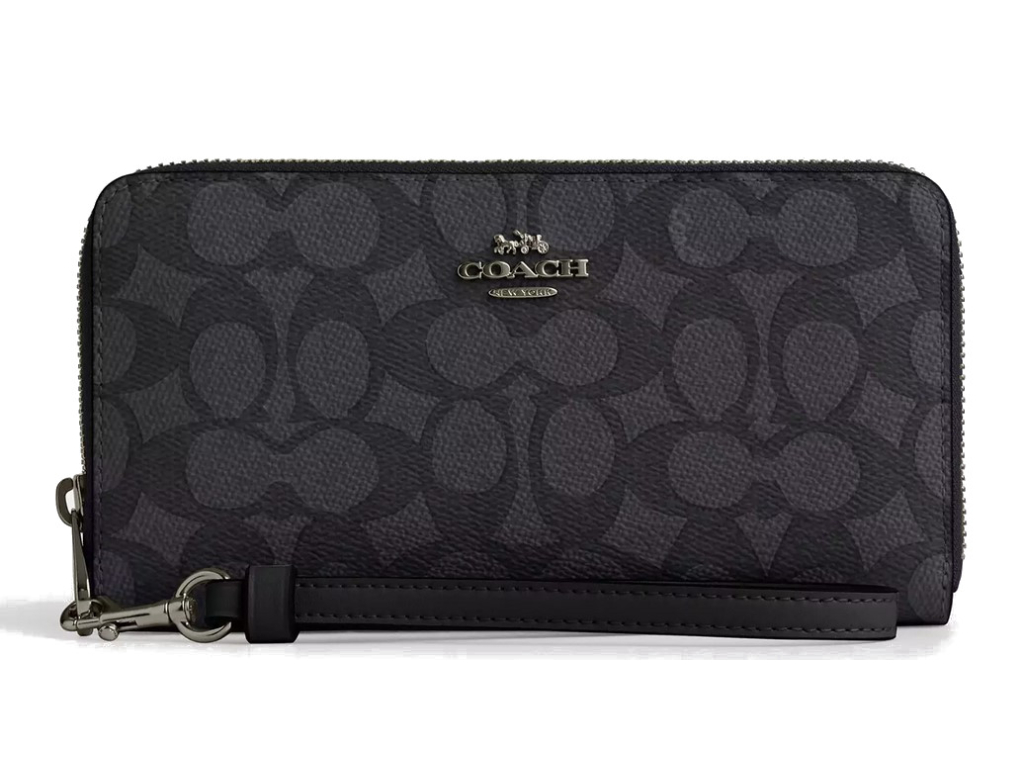 Coach Zip Around Signature Canvas Gunmetal Charcoal Black
