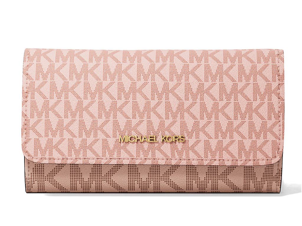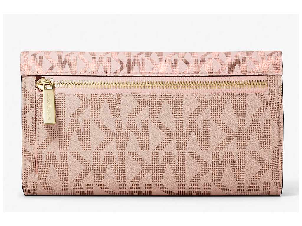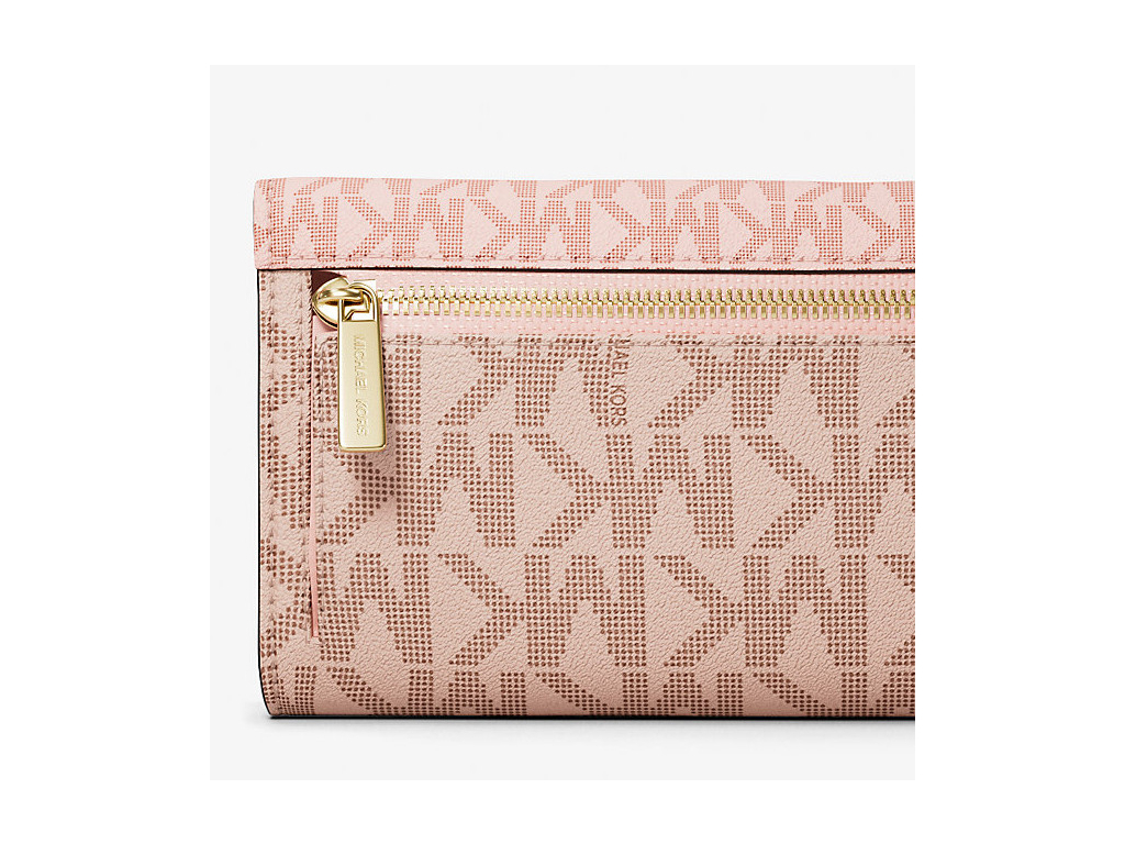Michael Kors Jet Set Large Signature Logo Tri-Fold Wallet Powder Blush Multi