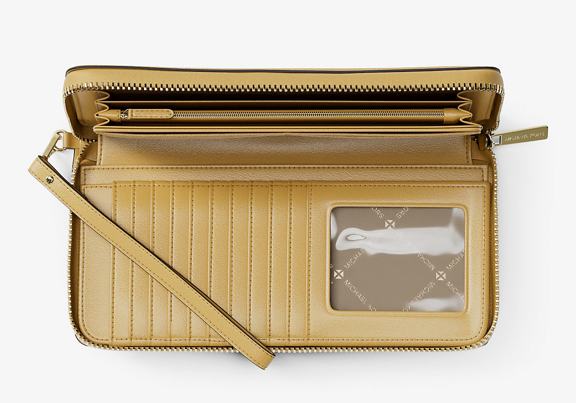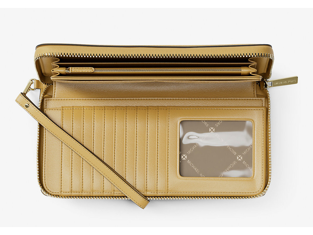 Michael Kors Large Pebbled Leather Continental Wristlet Honey