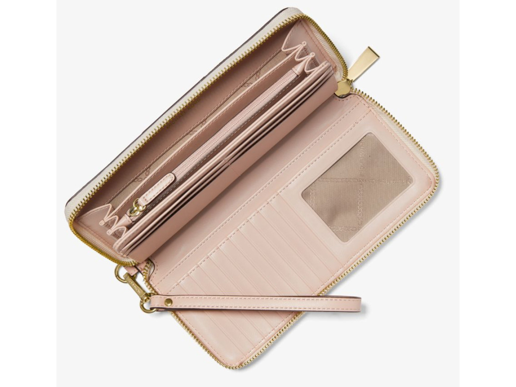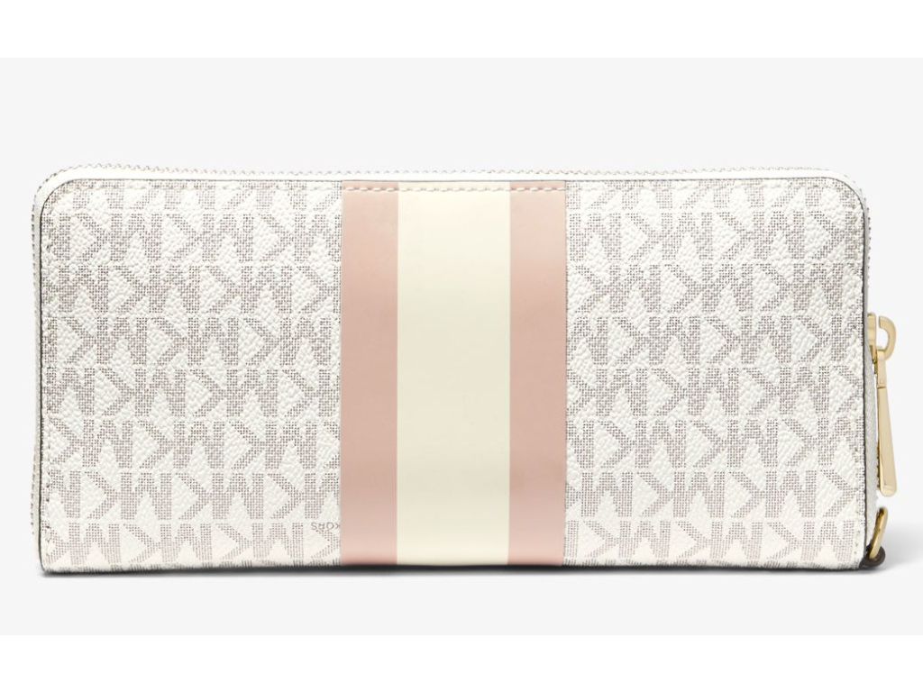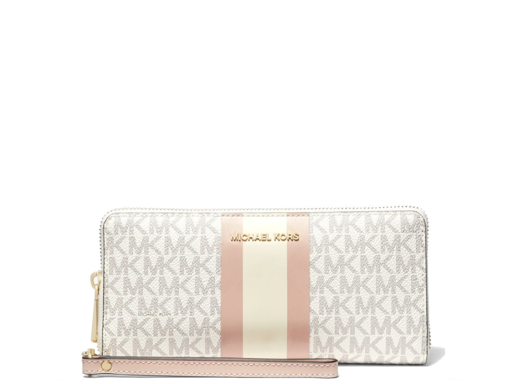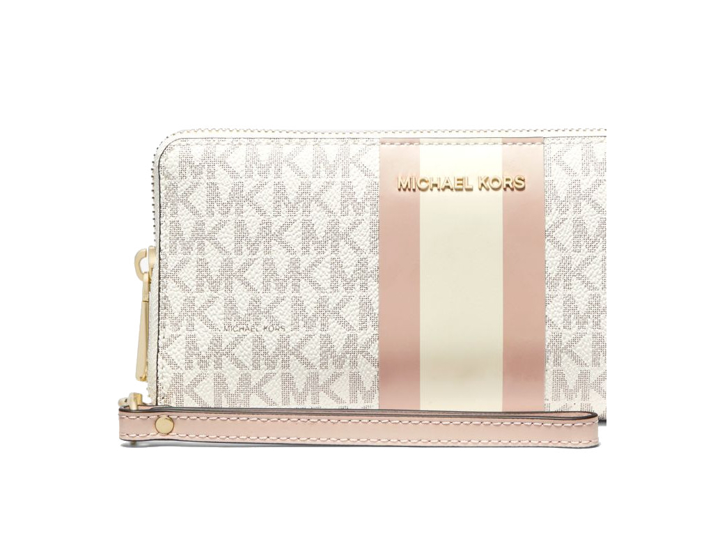 Michael Kors Logo Stripe Continental Wristlet Vanilla Soft Pink